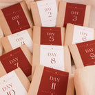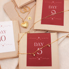Each day comes with a gold piece(s) wrapped in our branded jewelry pouches.