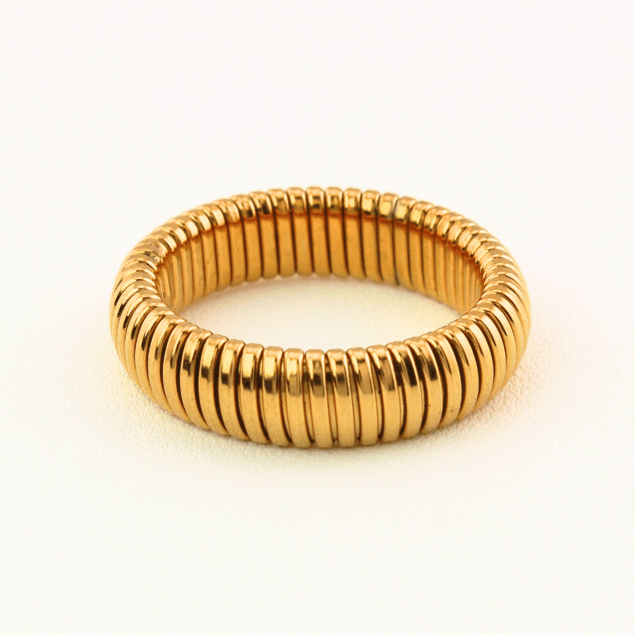 Elevate your everyday style with our stunning Addison chunky ring. Made from gold-plated stainless steel PVD, this statement piece shows a unique spiral thread design that is the perfect addition to any jewelry collection. Designed with a slight stretch for comfort, this ring hugs your finger perfectly while allowing for easy wear throughout the day.