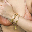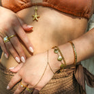 Say hello to your new summer obsession — the Satellite Hand Chain Bracelet. This dreamy piece wraps delicately around your wrist and finger with a dainty gold chain, adorned with scattered gold beads for a summery look.