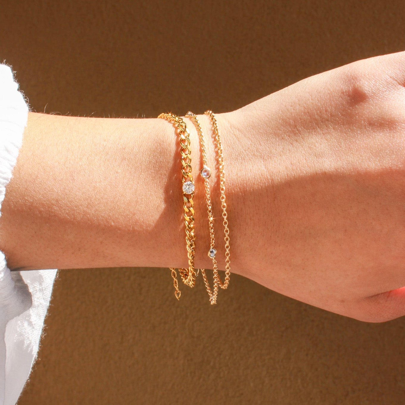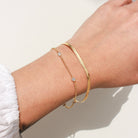 This gorgeous gold filled Elena bracelet features a stunning line of bezel set cubic zirconia stones that will catch eyes! She is dainty and lightweight, perfect for everyday wear. The Gold filled metal ensures long-lasting shine. The Elena bracelet looks beautiful on its own or stacked with our other gold filled bracelets