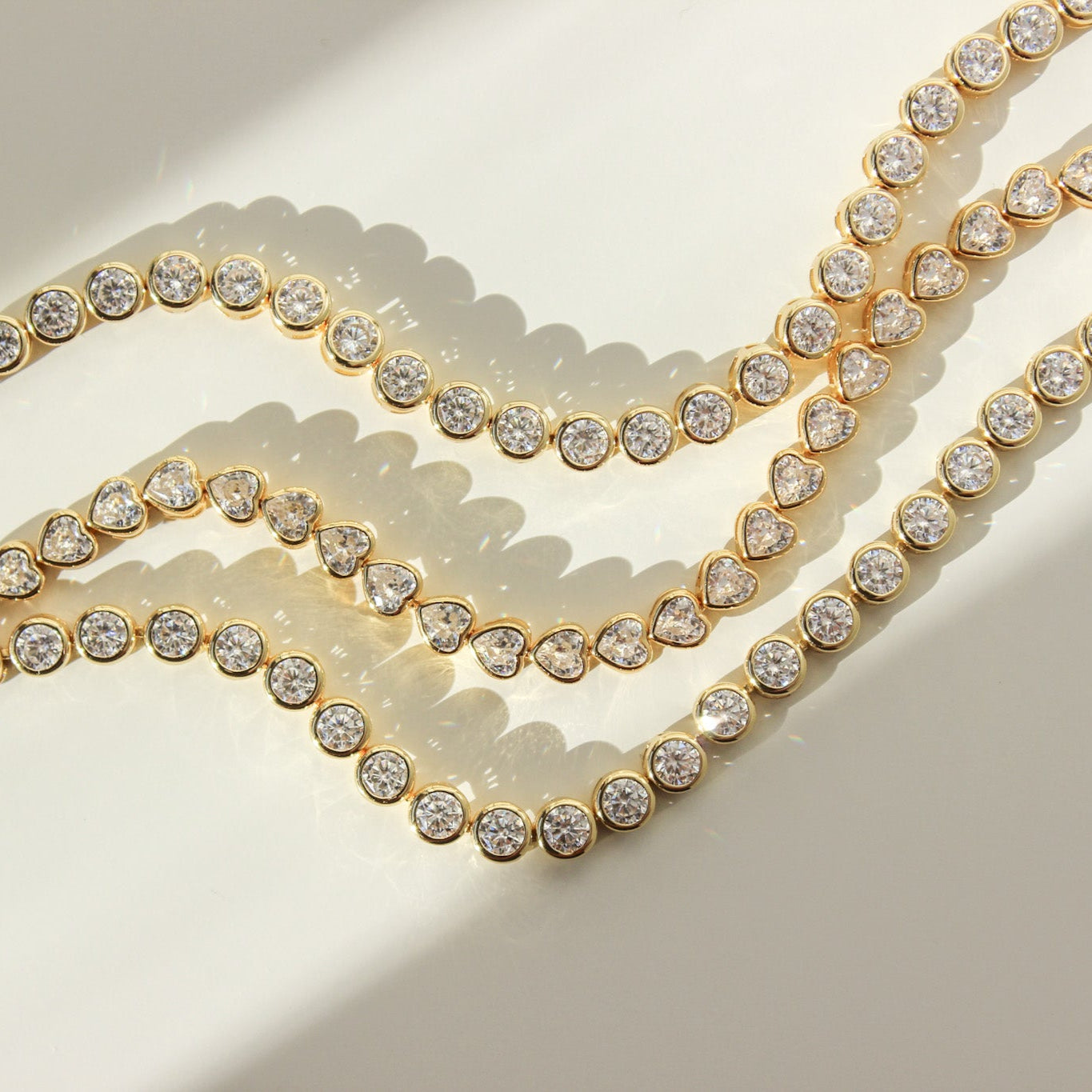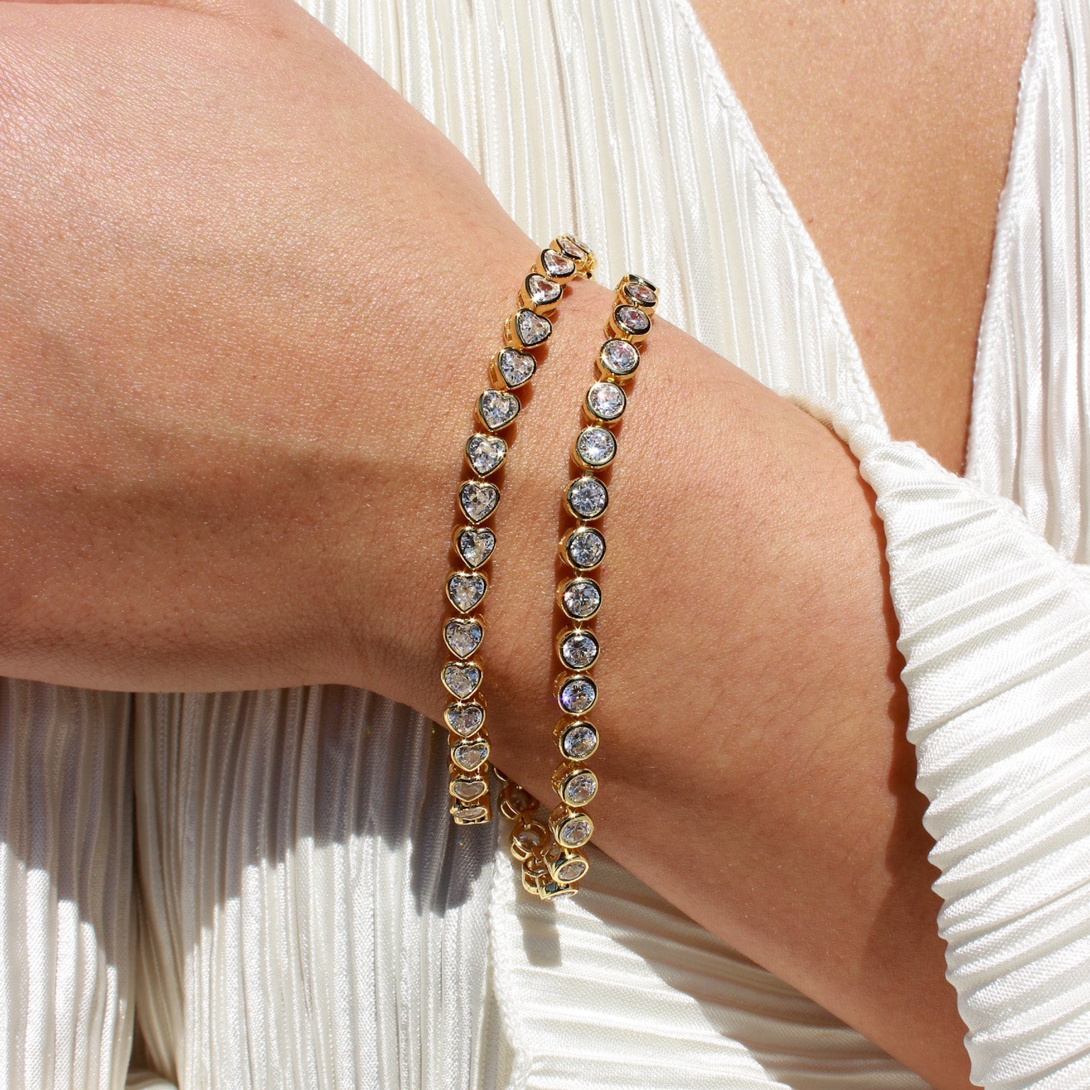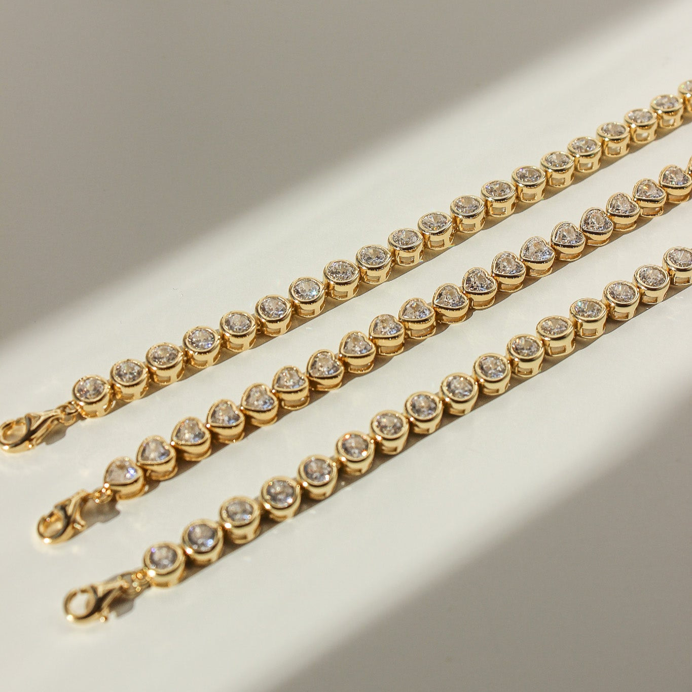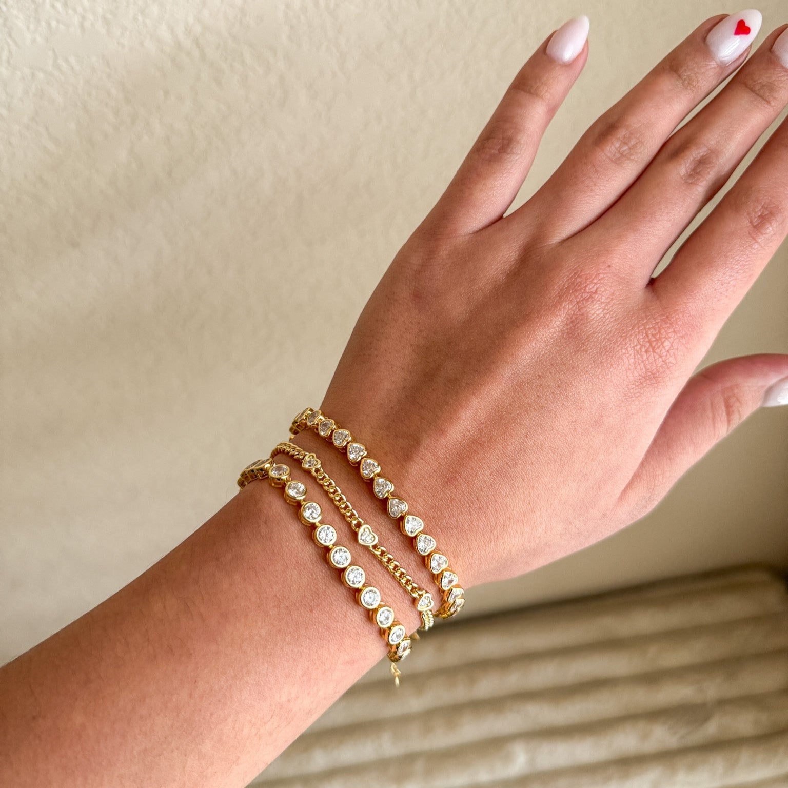 Add a touch of romance to your bracelet stack with our First Love bracelet! Adorned with sparkling, heart-shaped stones, this delicate yet eye-catching piece is perfect for layering or wearing solo for a sweet dainty look.