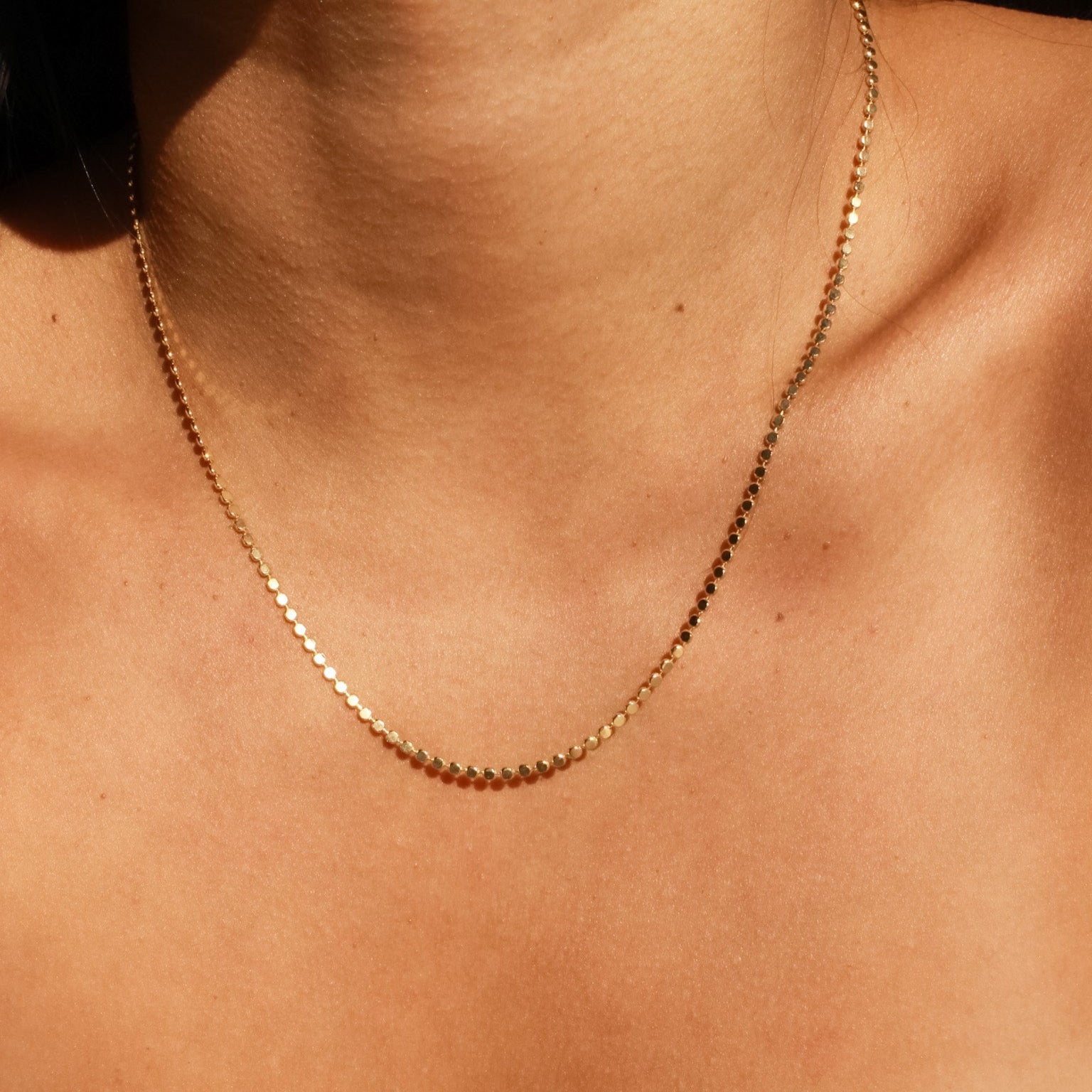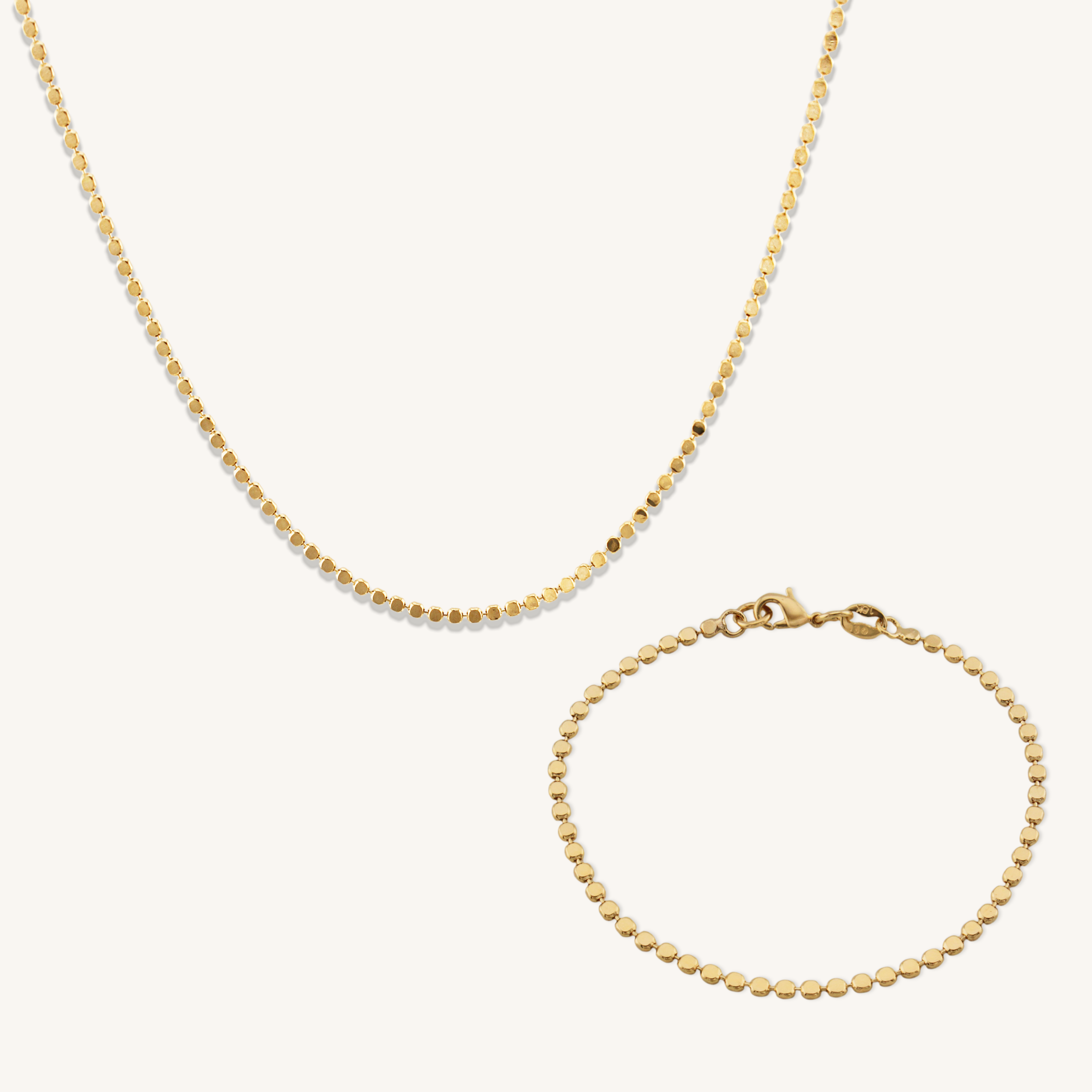 Elevate your jewelry collection with the Francesca Chain Necklace and Bracelet Set, designed for effortless layering and stacking. Featuring our signature flat bead style chain. Perfect for wearing alone for a minimalist vibe or layering with other pieces, this set is the ideal starting point for building your jewelry collection.