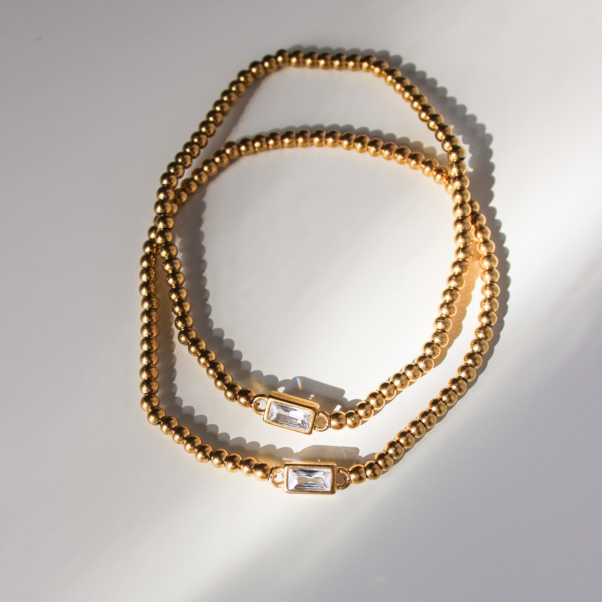 GOLD BEADED BAGUETTE BRACELET