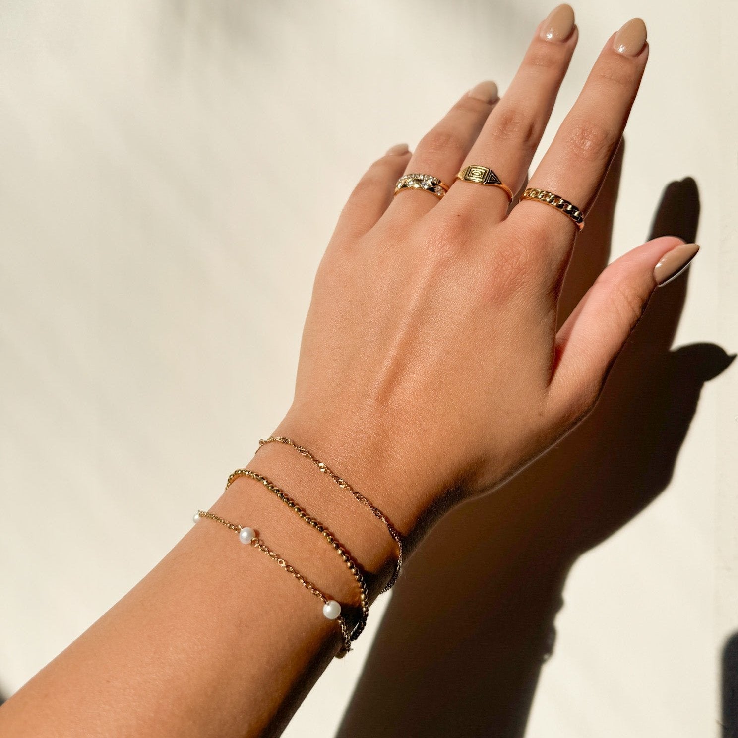 Note: For pieces with pearls or gemstones, please remove them before water or sweat exposure to preserve their shine and luster.