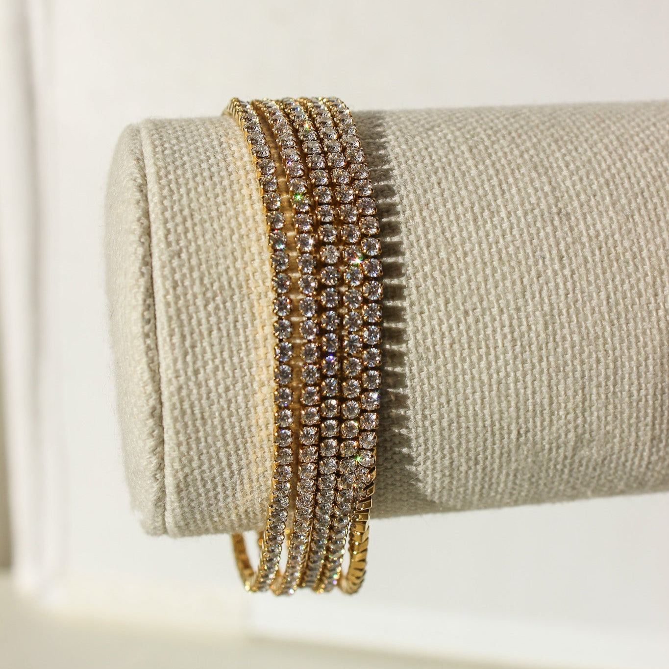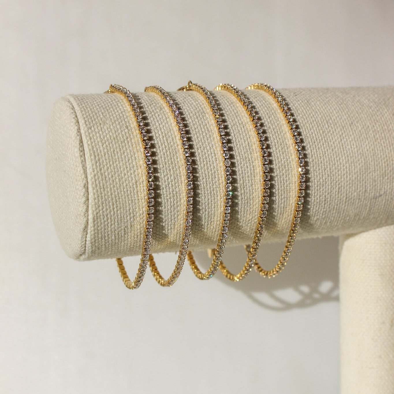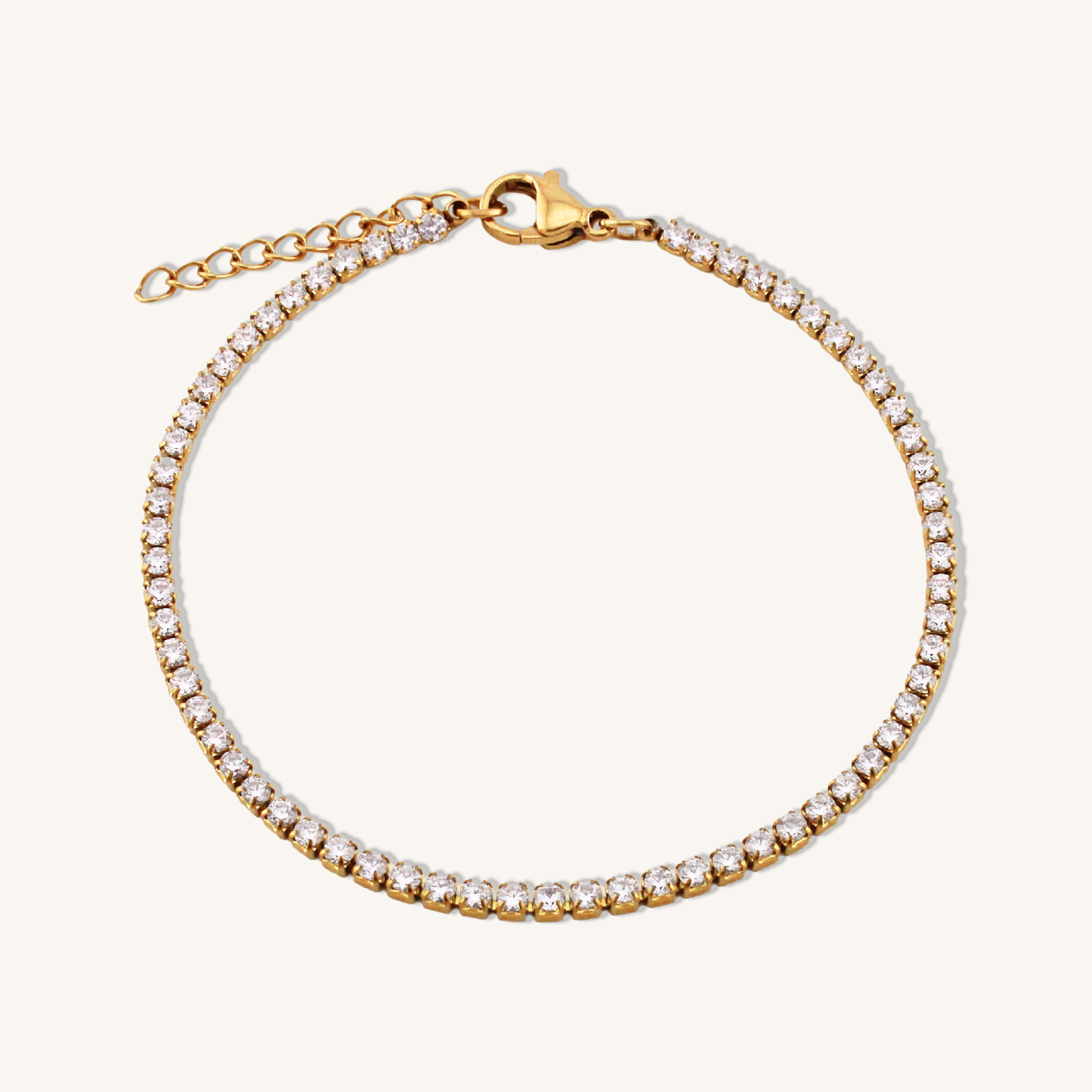 This classic gold tennis bracelet is simple, stylish, and perfect for everyday wear. It features shiny dainty cubic zirconia stones that add just the right amount of sparkle.
