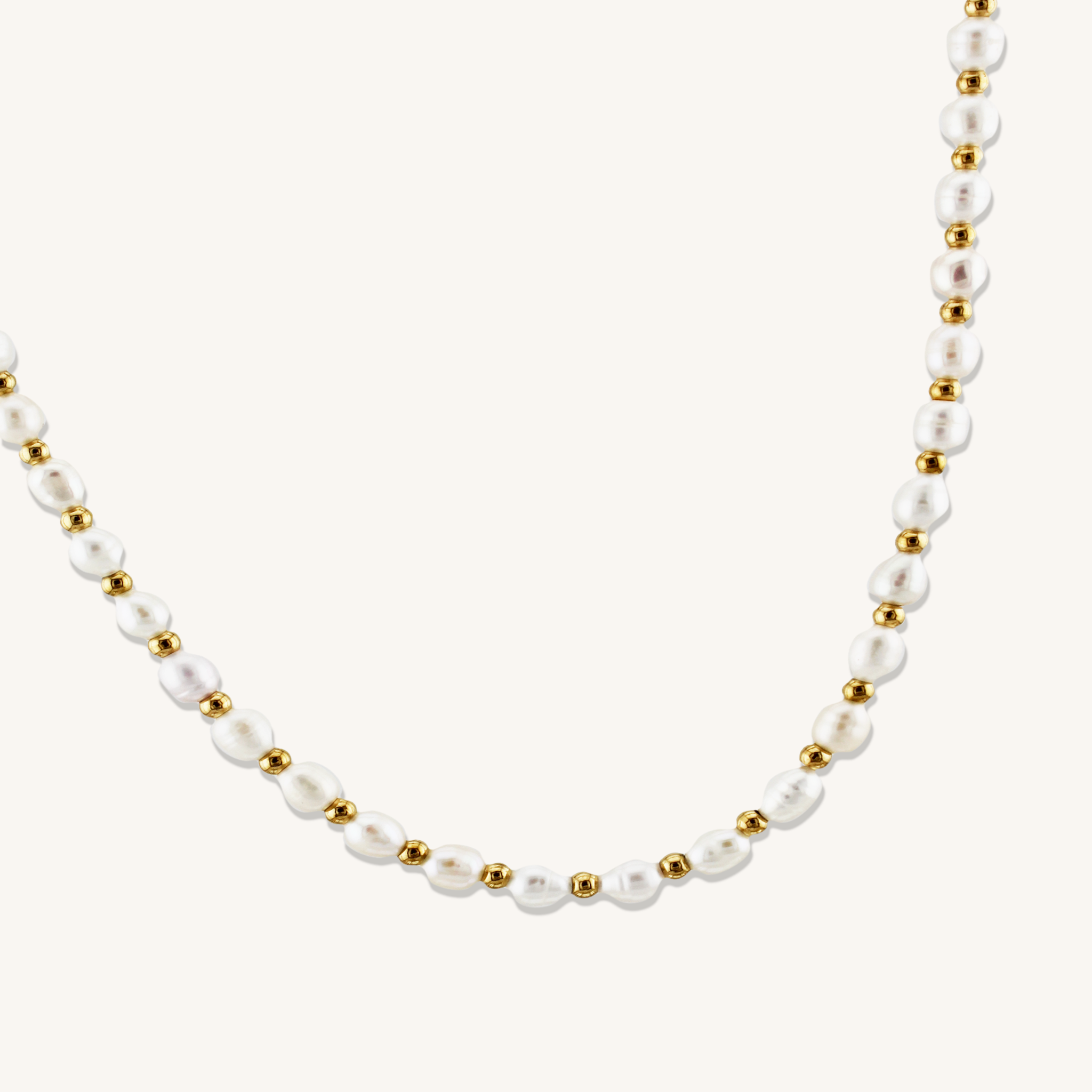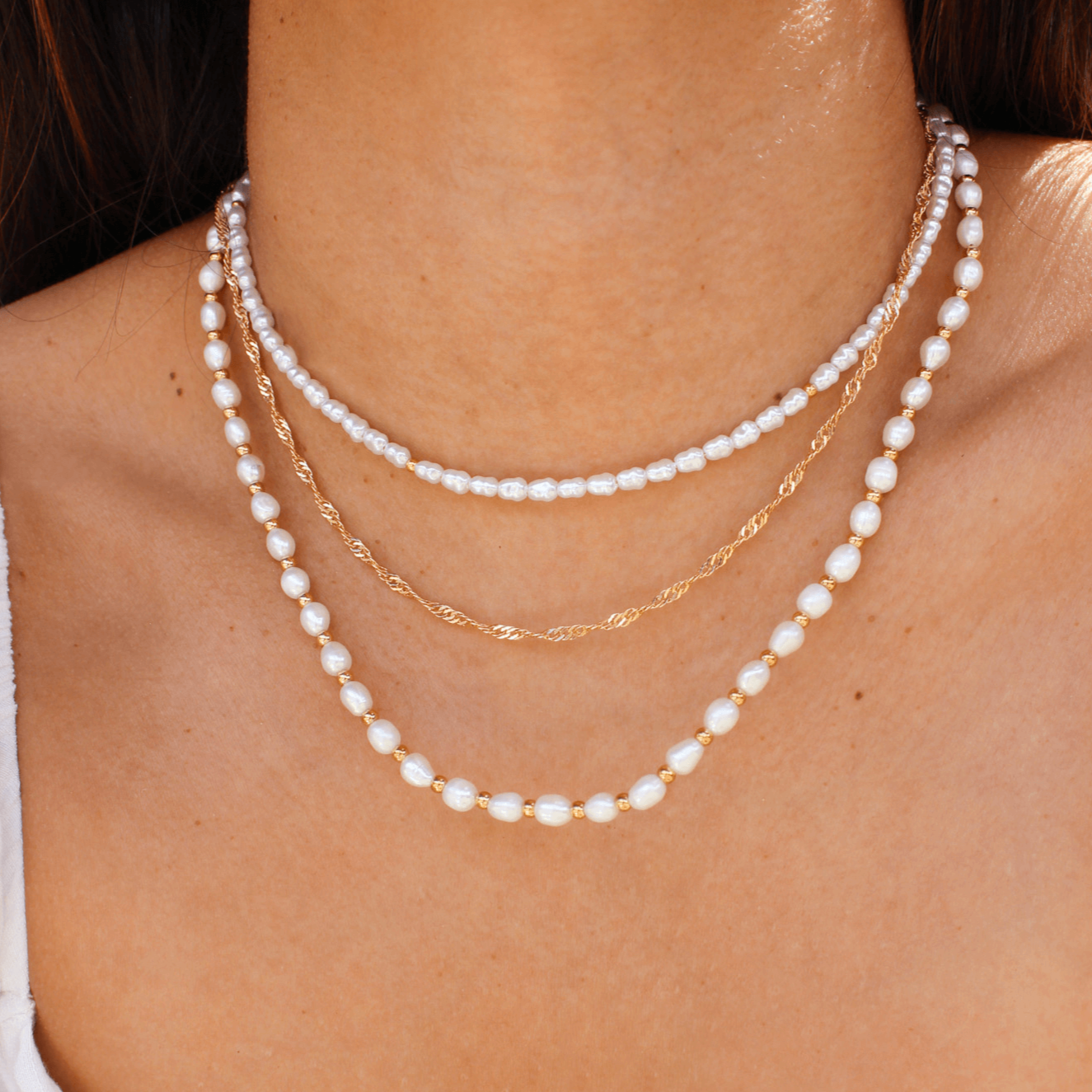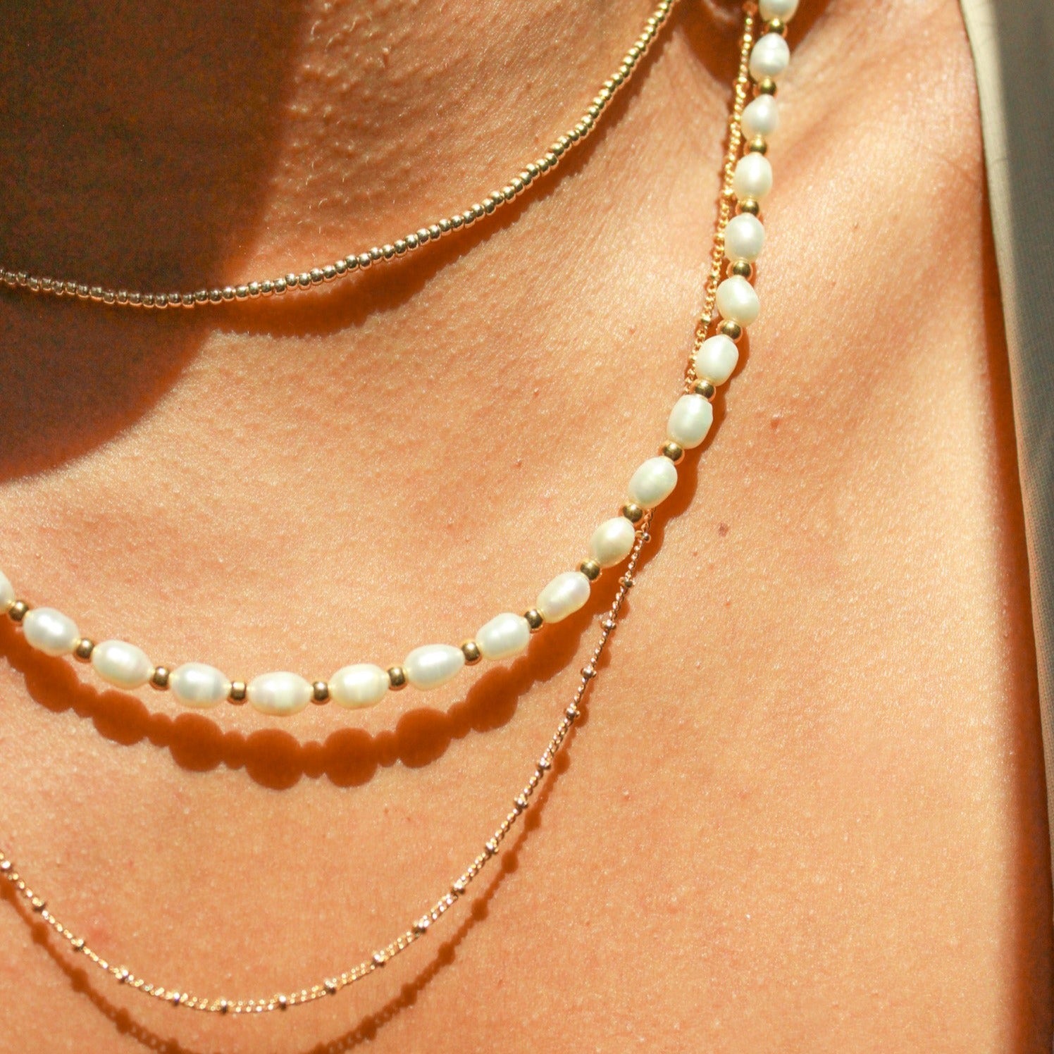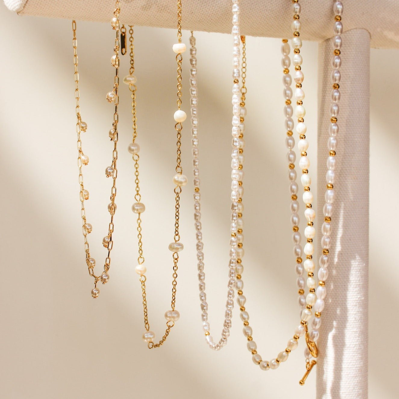 The Kailani Necklace is the perfect addition to your beach jewelry collection. With its stunning faux pearls and gold bead detailing, it's sure to add a touch of elegance to your minimal look. This adjustable pearl jewelry piece is versatile enough to wear with any outfit and will give you that effortless beach look.