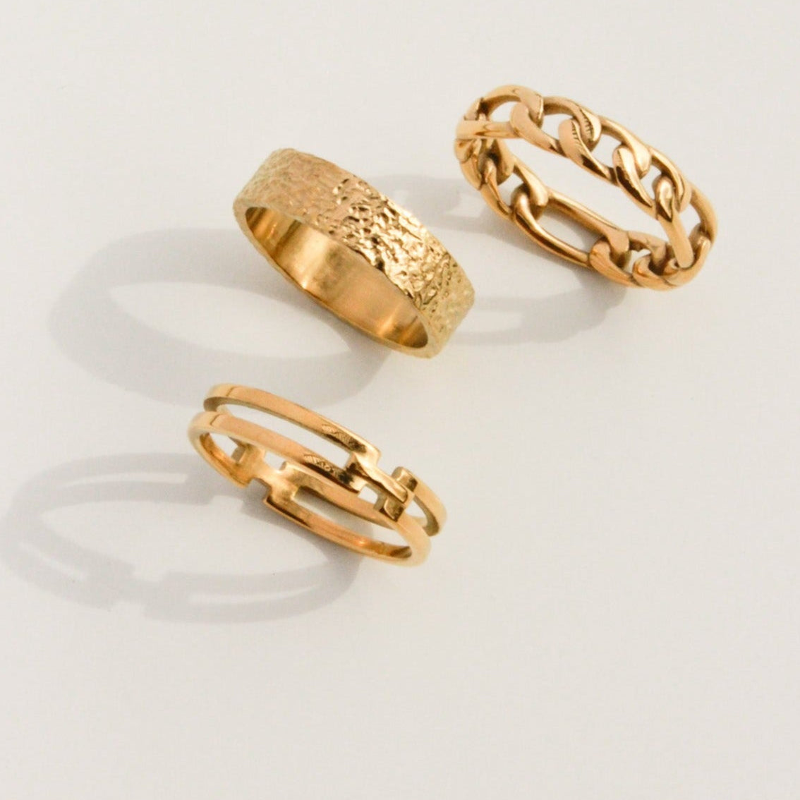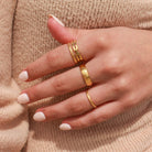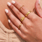 If you're a minimal jewelry lover, you'll love our Lucia ring! This dainty gold ring is just perfect for a minimal style. You can stack it along with a ring stack or wear it alone. The best part, it's tarnish resistant and waterproof. Plus, it’s made with a stainless steel base and perfect for all-day wear. Time to update your jewelry box with this lovely piece.
