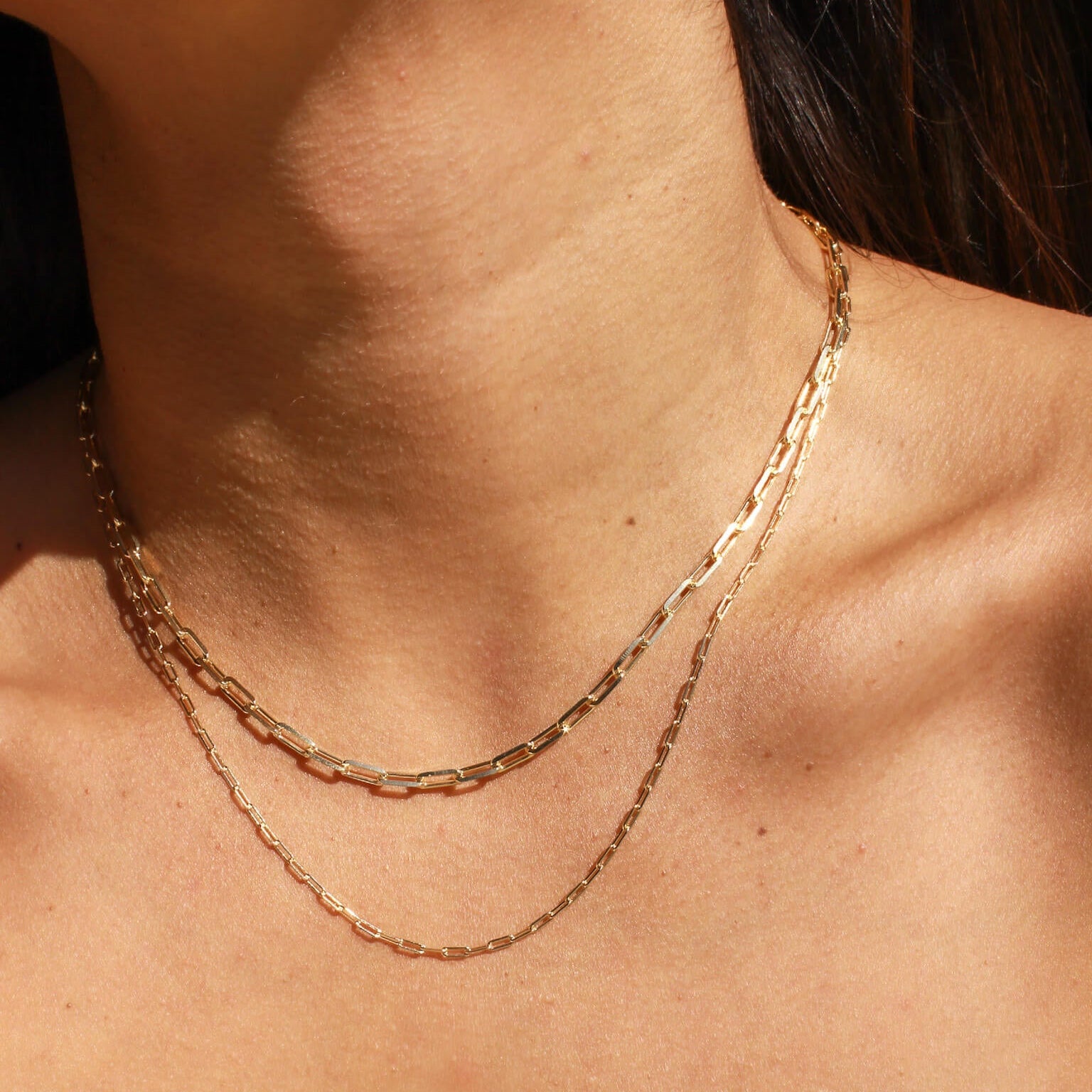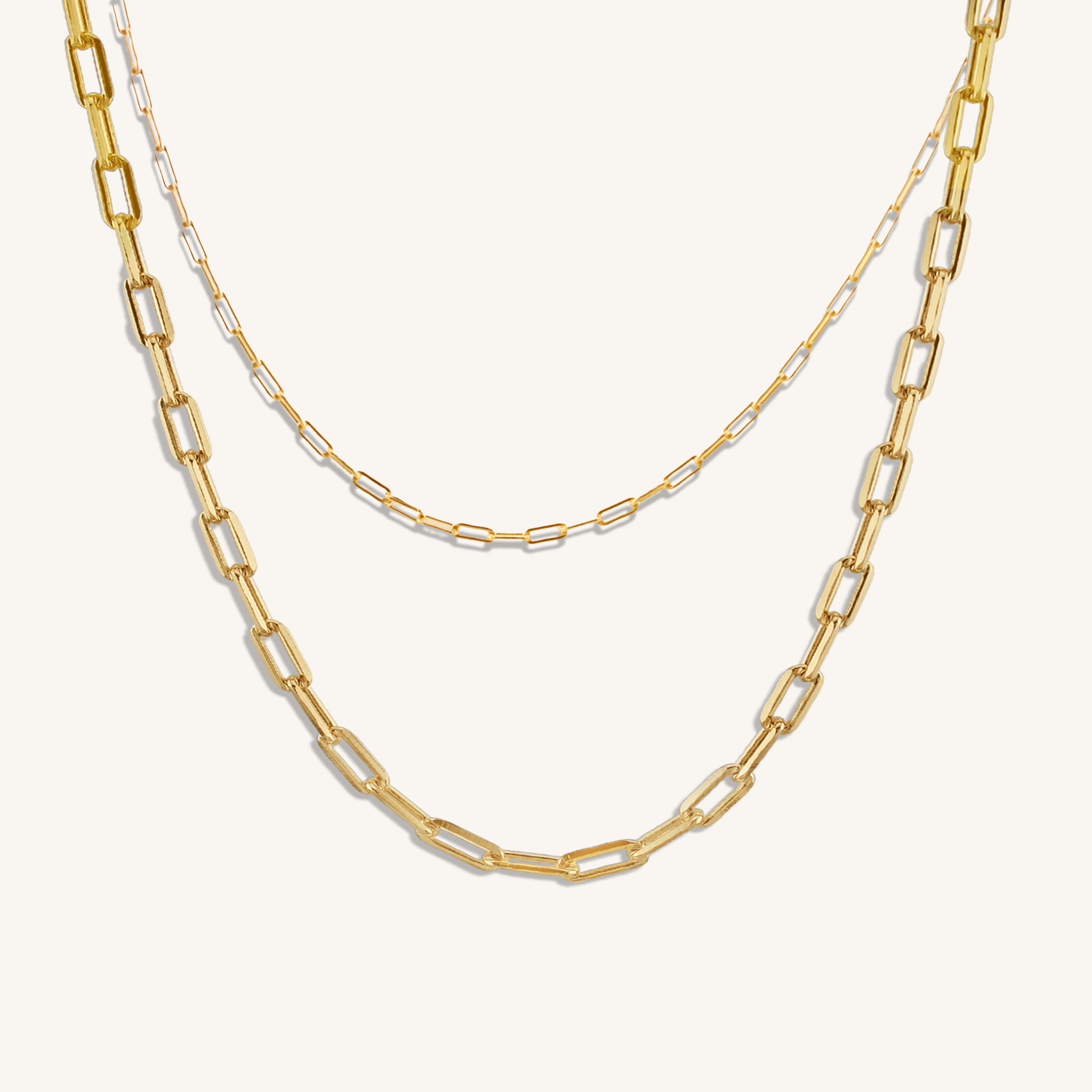 The Reema Paperclip Necklace Set—the ultimate combination for a layered look. Featuring trendy paperclip links, this set is designed for your everyday style. The gold-filled construction ensures that each piece is not only stunning but also made to last, with a rich, durable finish that resists tarnishing.