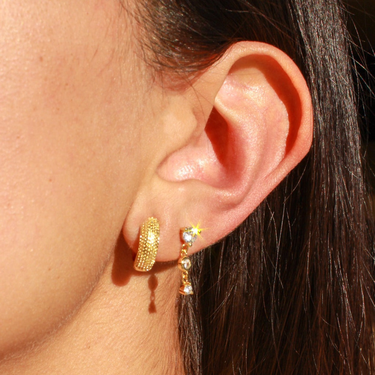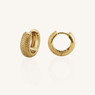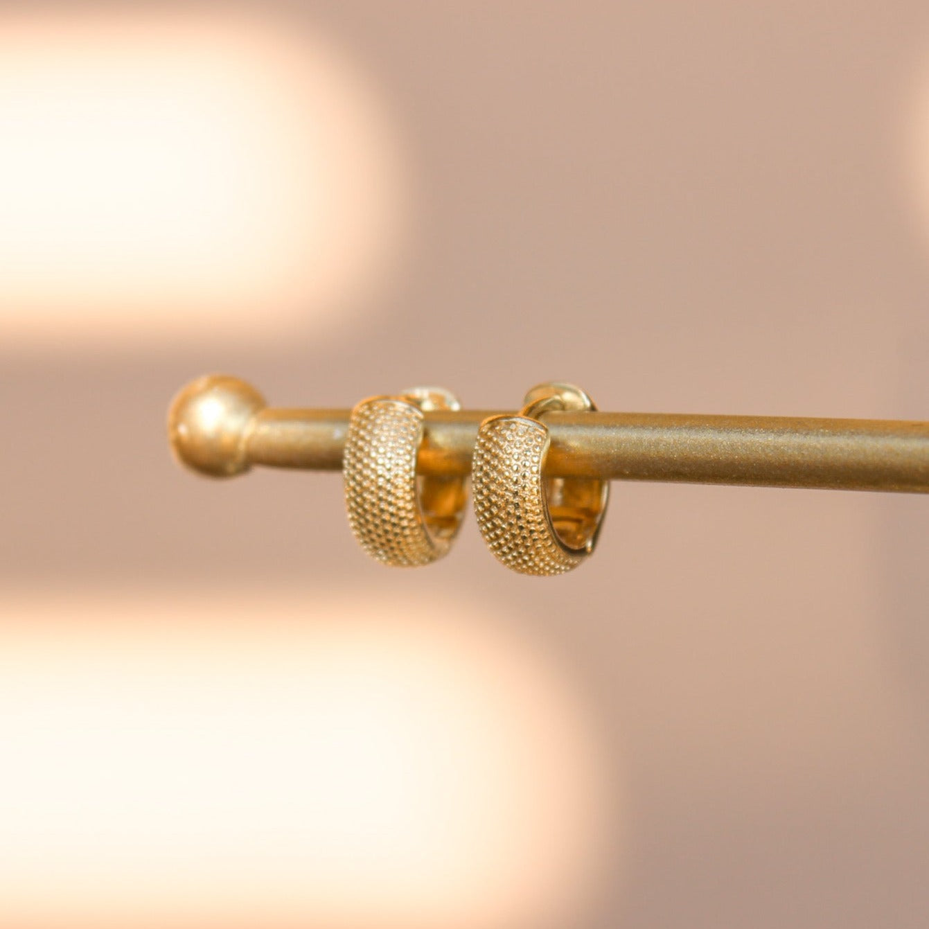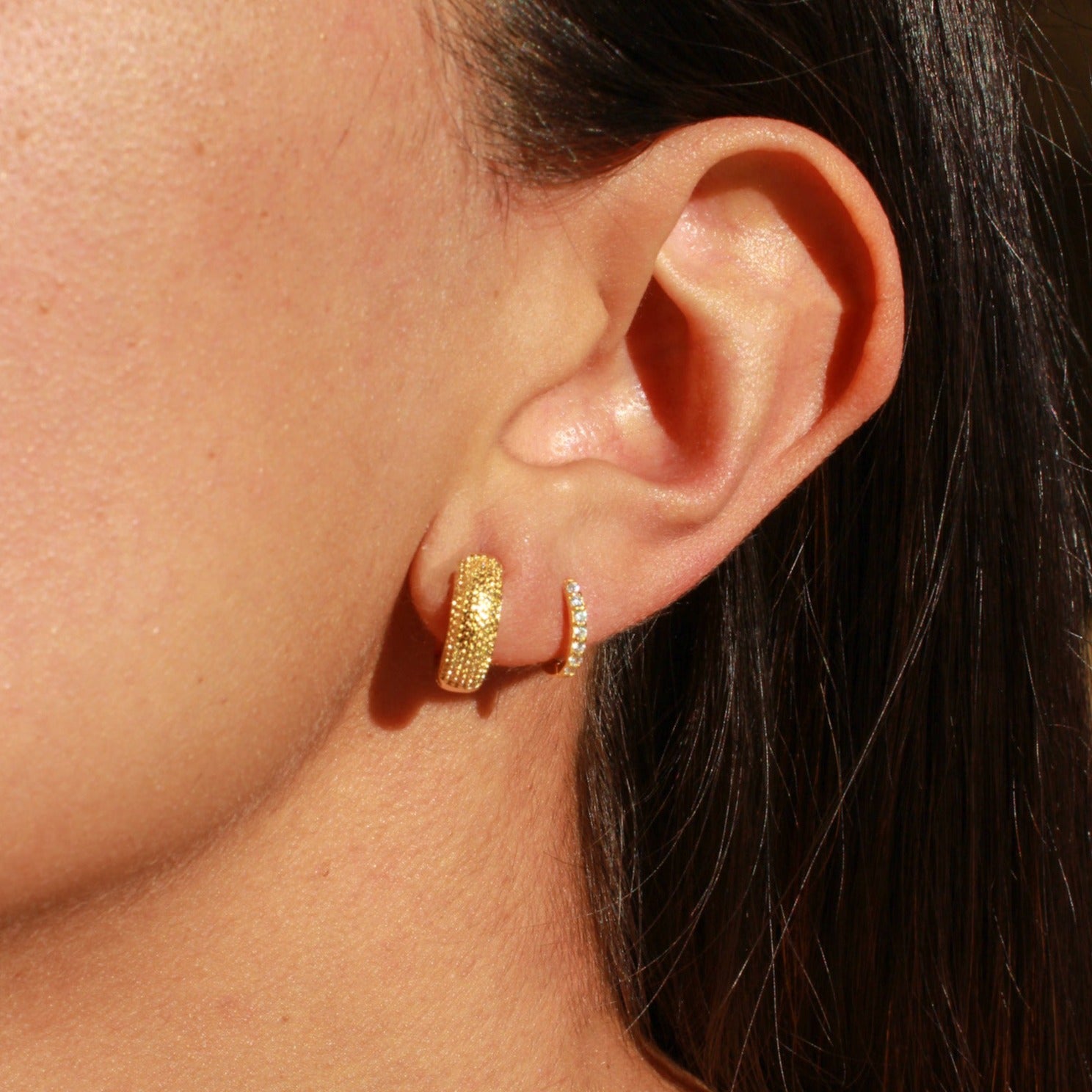 Pick up these stunning Ellie Huggies! Gold-filled and textured for the perfect finish, these 14mm hoops will add just the right touch of style to your everyday look. They're lightweight and minimal, so your ears wont feel weighed down!