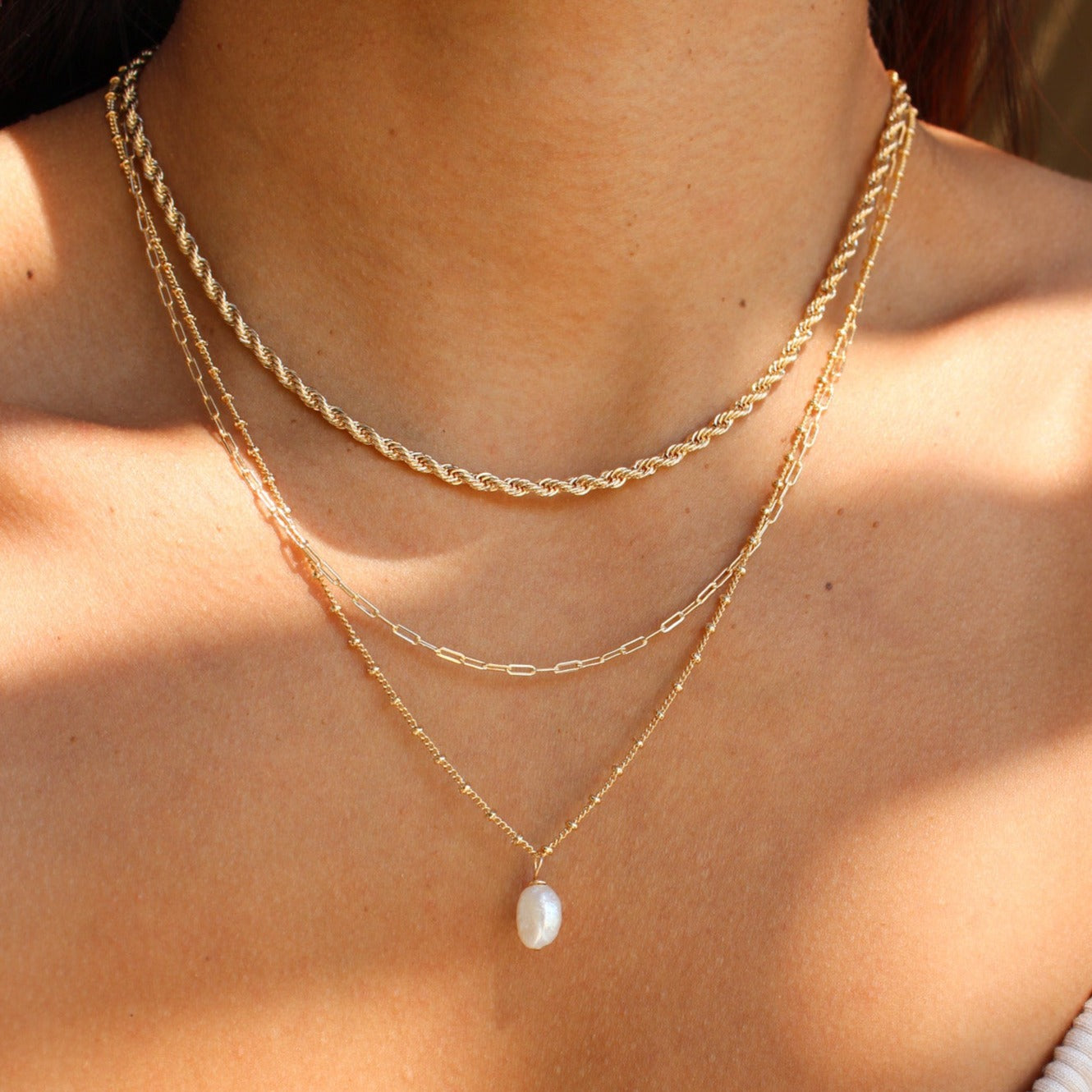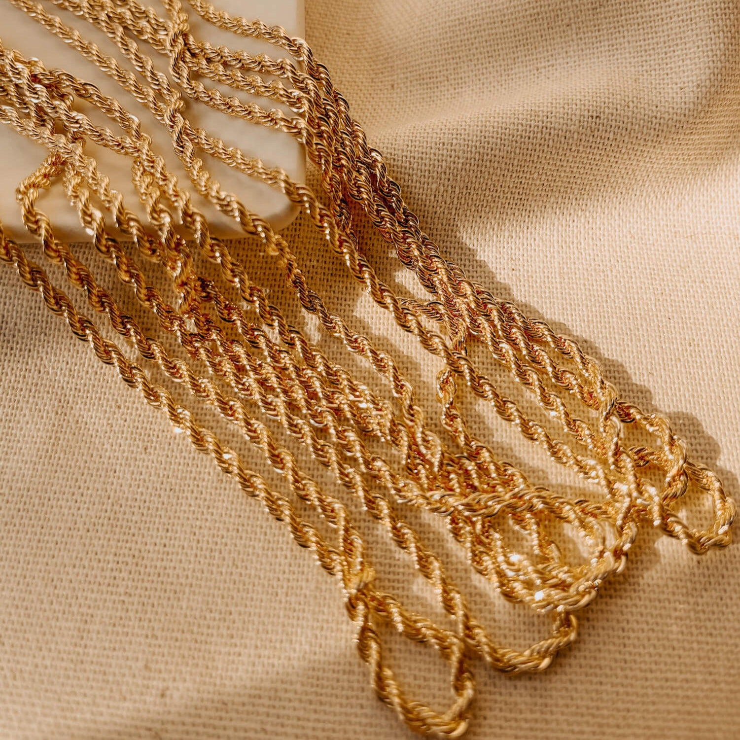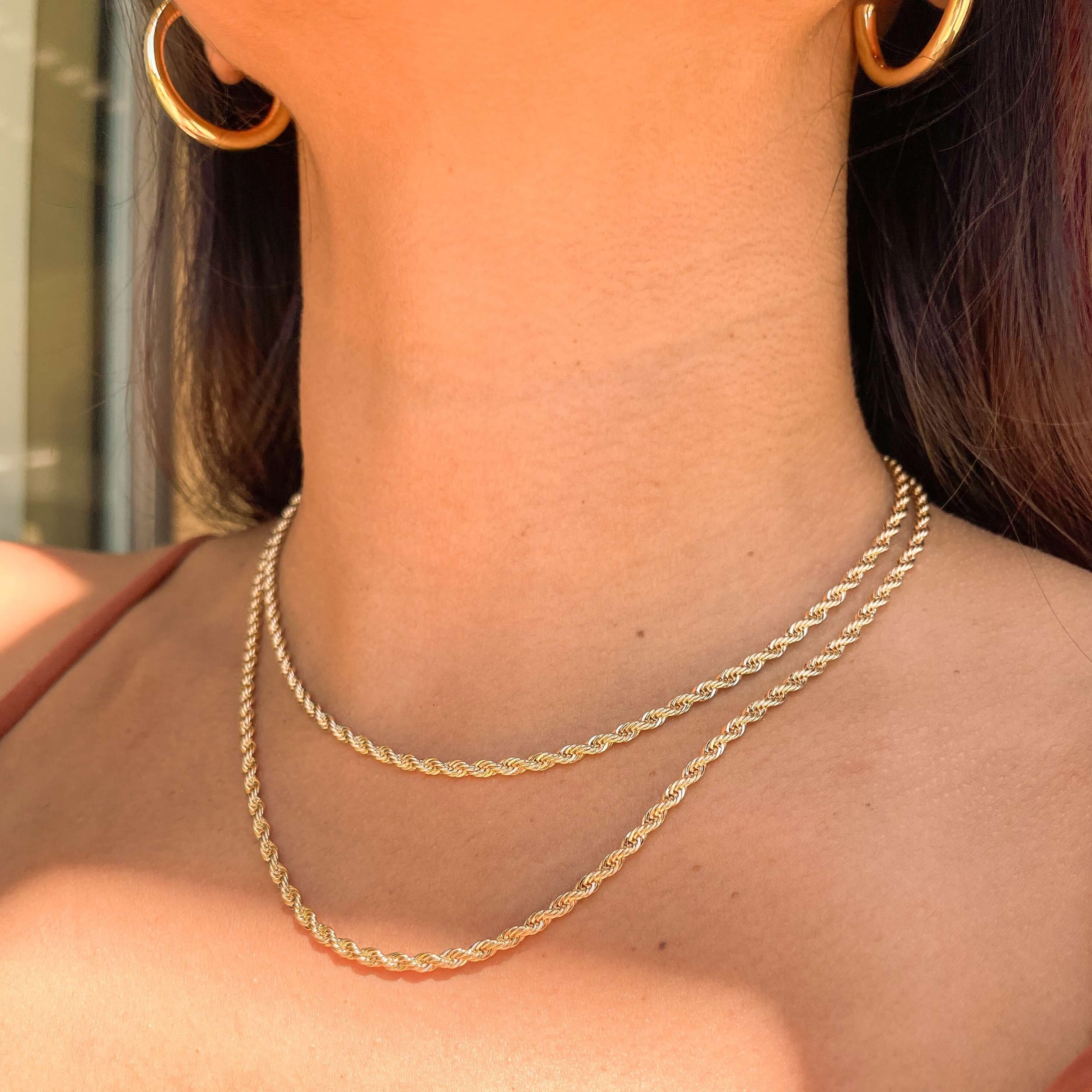 Our Anna rope necklace is a classic, everyday essential. Crafted with gold filled metal for lasting non tarnish wear, make this dainty rope chain necklace one of your must-have layering chains. With an elegant twist to its rope-like design, this gold piece is the perfect addition to your collection.
