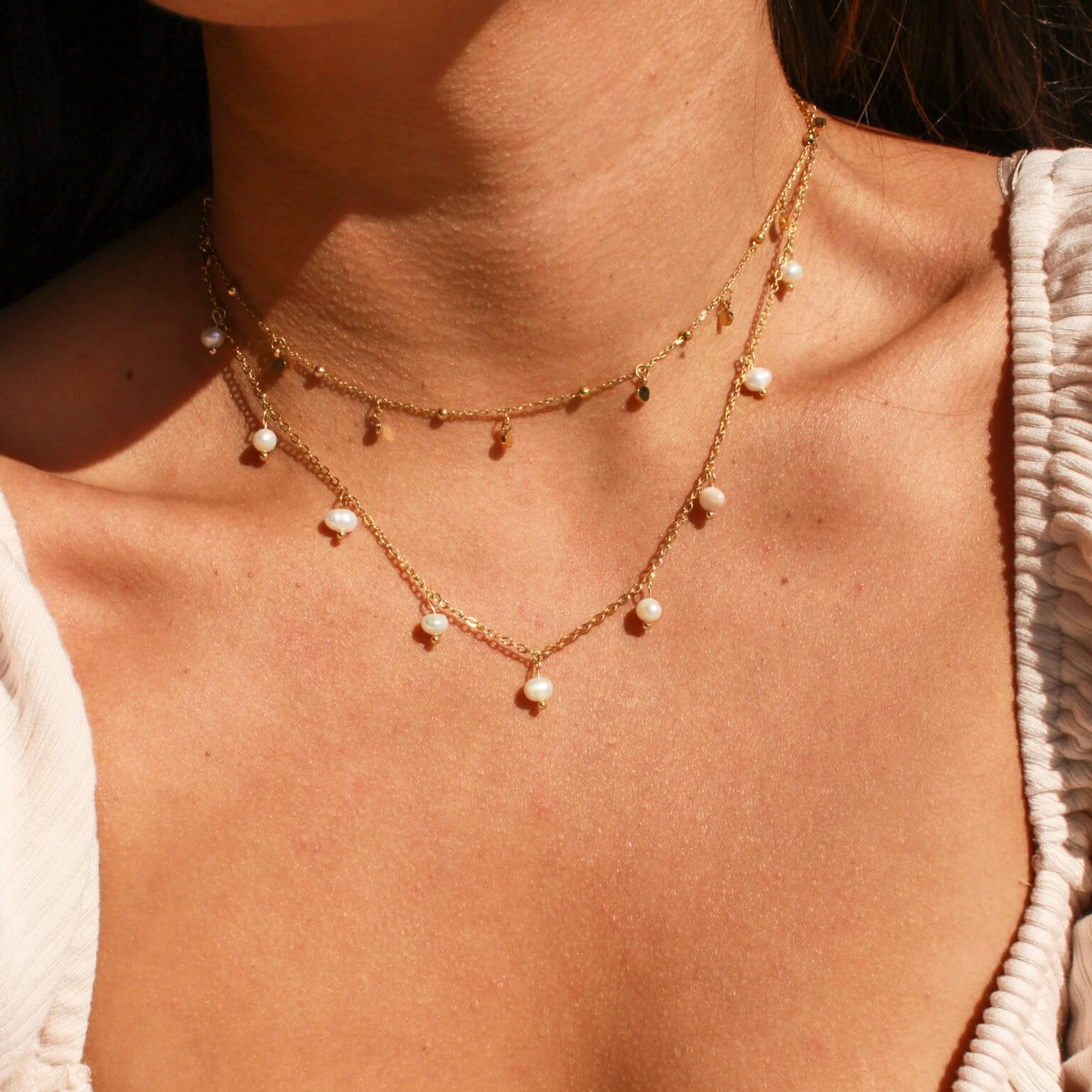 Meet the Alma Necklace - the perfect addition to your everyday collection. Made with durable and long-lasting gold plated stainless steel, this necklace goes well with both boho and minimal styles. The waterproof PVD plating makes it effortlessly suitable for daily wear, while the length allows you to layer it with other chains for a stunning layered look.