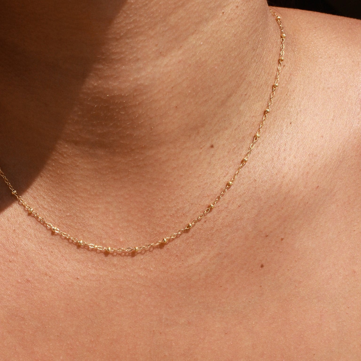 The perfect dainty gold-filled necklace that adds a bit of sparkle to any outfit. Our satellite bead style design is perfect for layering with other necklaces for a unique layered look. With its comfortable fit, you can wear this piece all day long and feel your best.