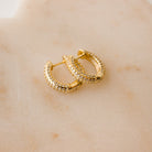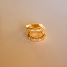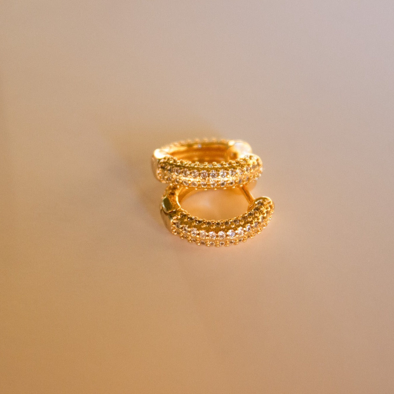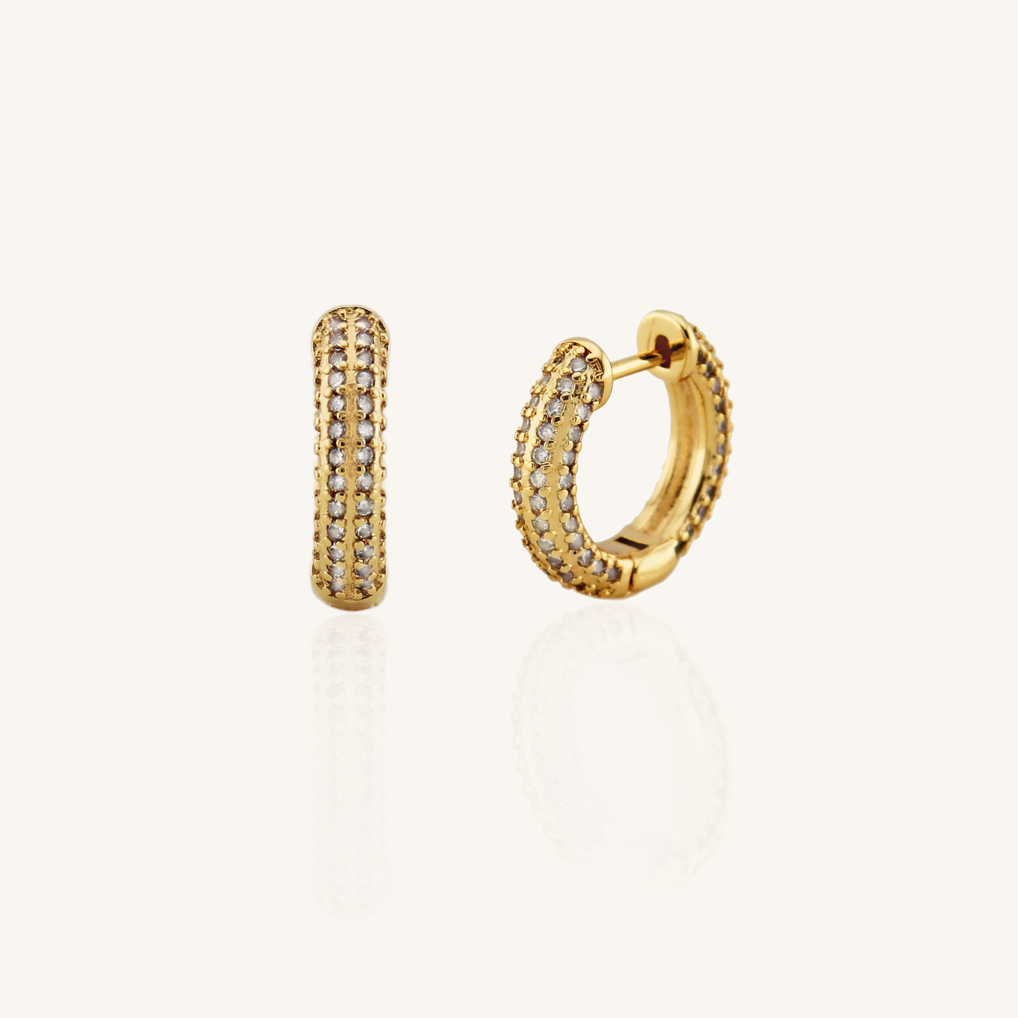Introducing the Millie Earrings - the ideal pair of earrings for your daily wear. With their simple yet classic design, our huggies are the perfect addition to your jewelry box. Adorned with pave cubic zirconia, our small hoops are lightweight and comfortable to wear. The ideal earrings when you're on the go, our tarnish-free and dainty earrings look great by themselves or paired with other pieces in your earring stack.