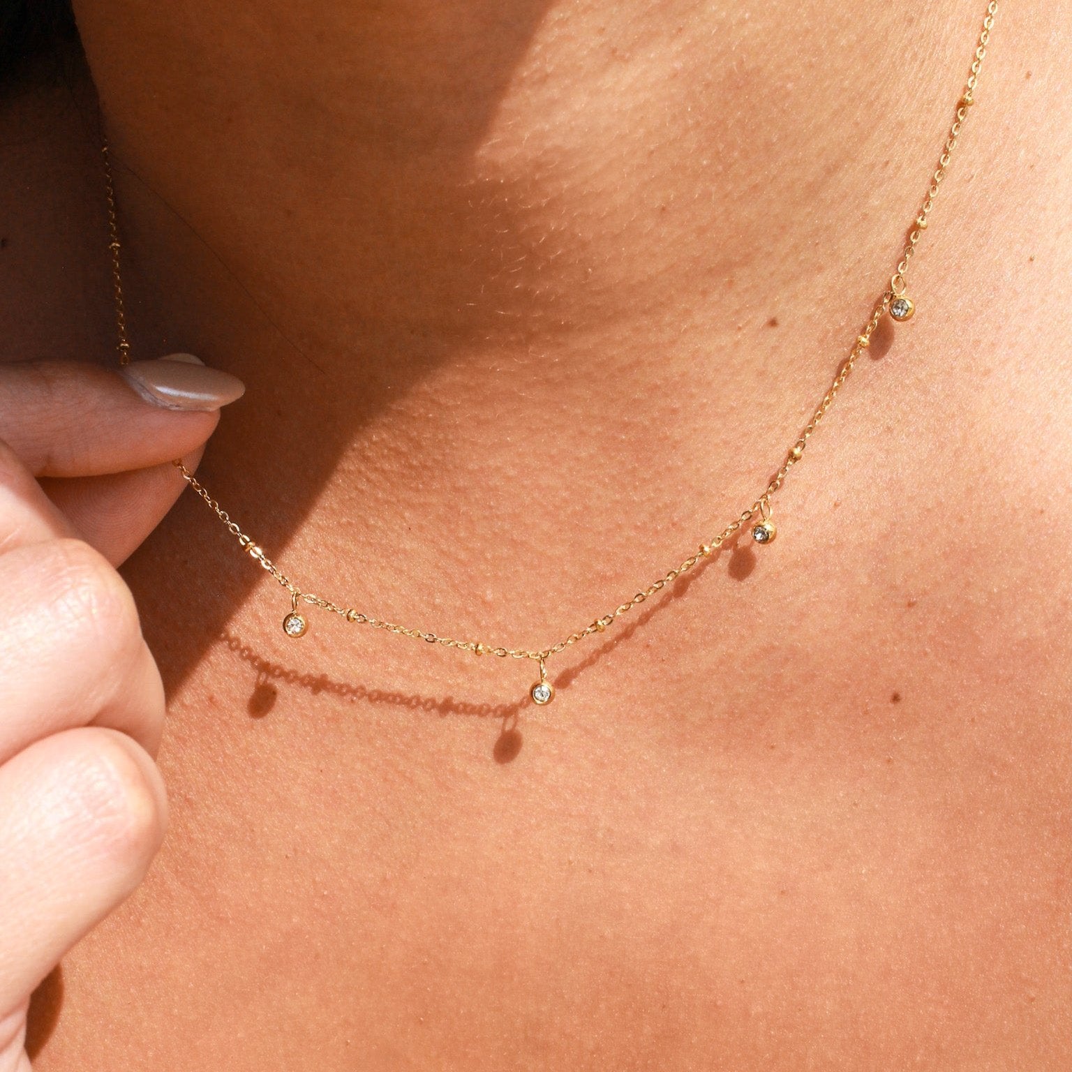Our jewelry is made with a high-quality stainless steel base and finished with a special PVD coating process—giving each piece a thicker, more durable plating that’s water-safe and long-lasting.