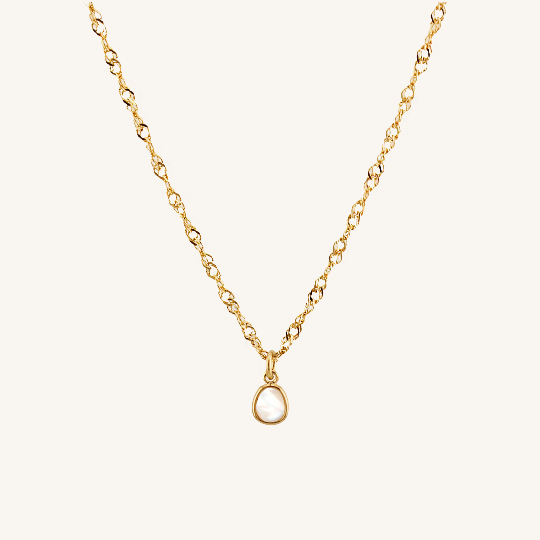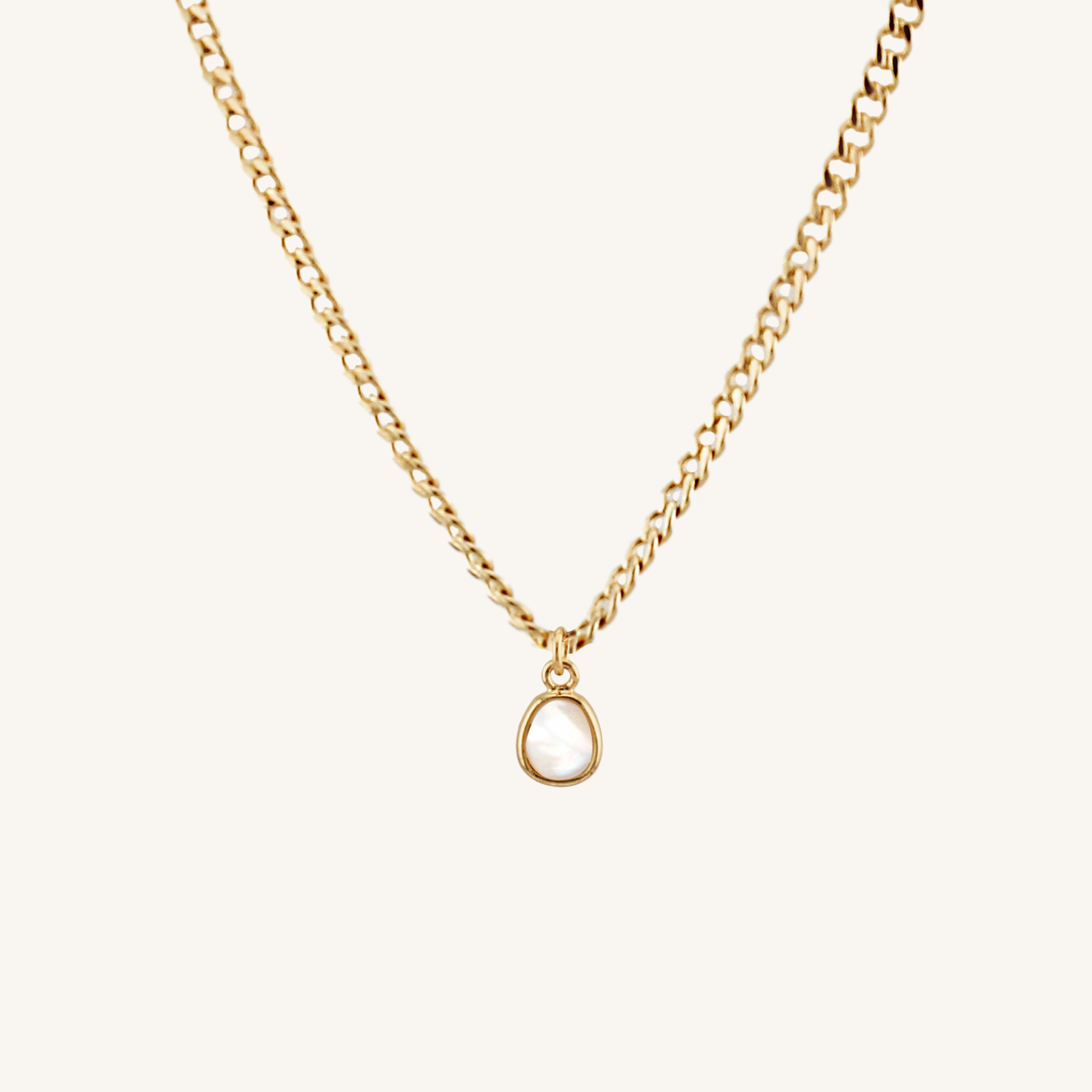 Make a subtle statement with our Mother Pearl necklace. Made from dainty gold filled material, this necklace features an oval dangle pearl charm. Whether you prefer a twist chain, cable chain, or cuban link chain, this versatile piece can be styled to suit any occasion. Perfect for wearing alone or layering with our other gold chains.