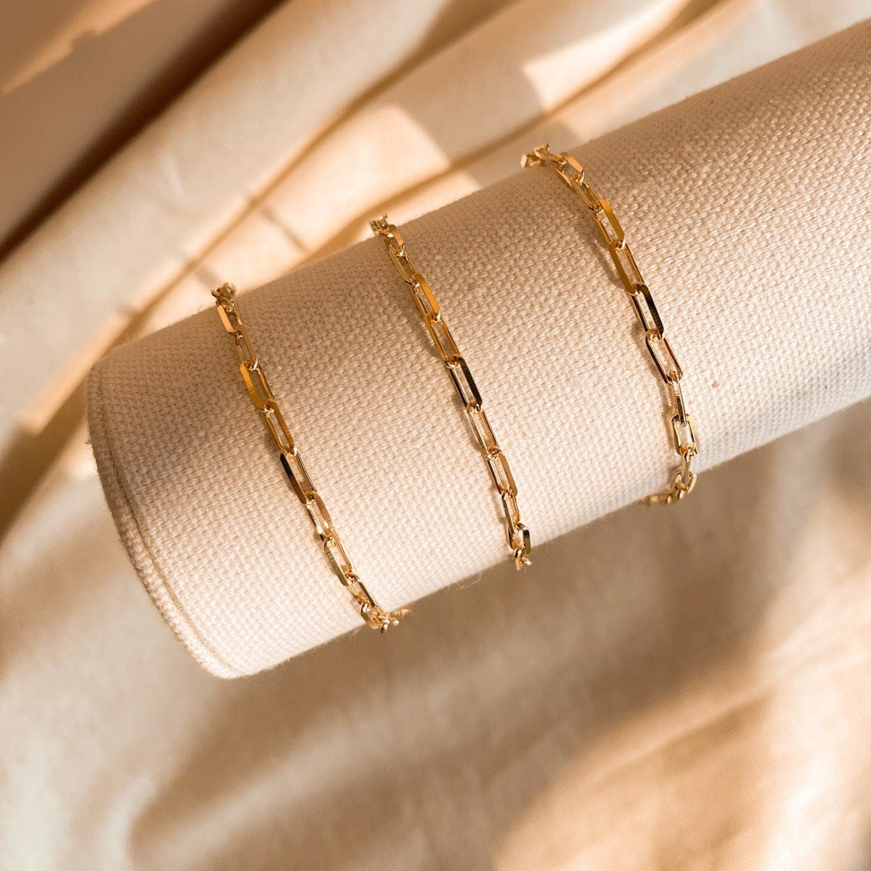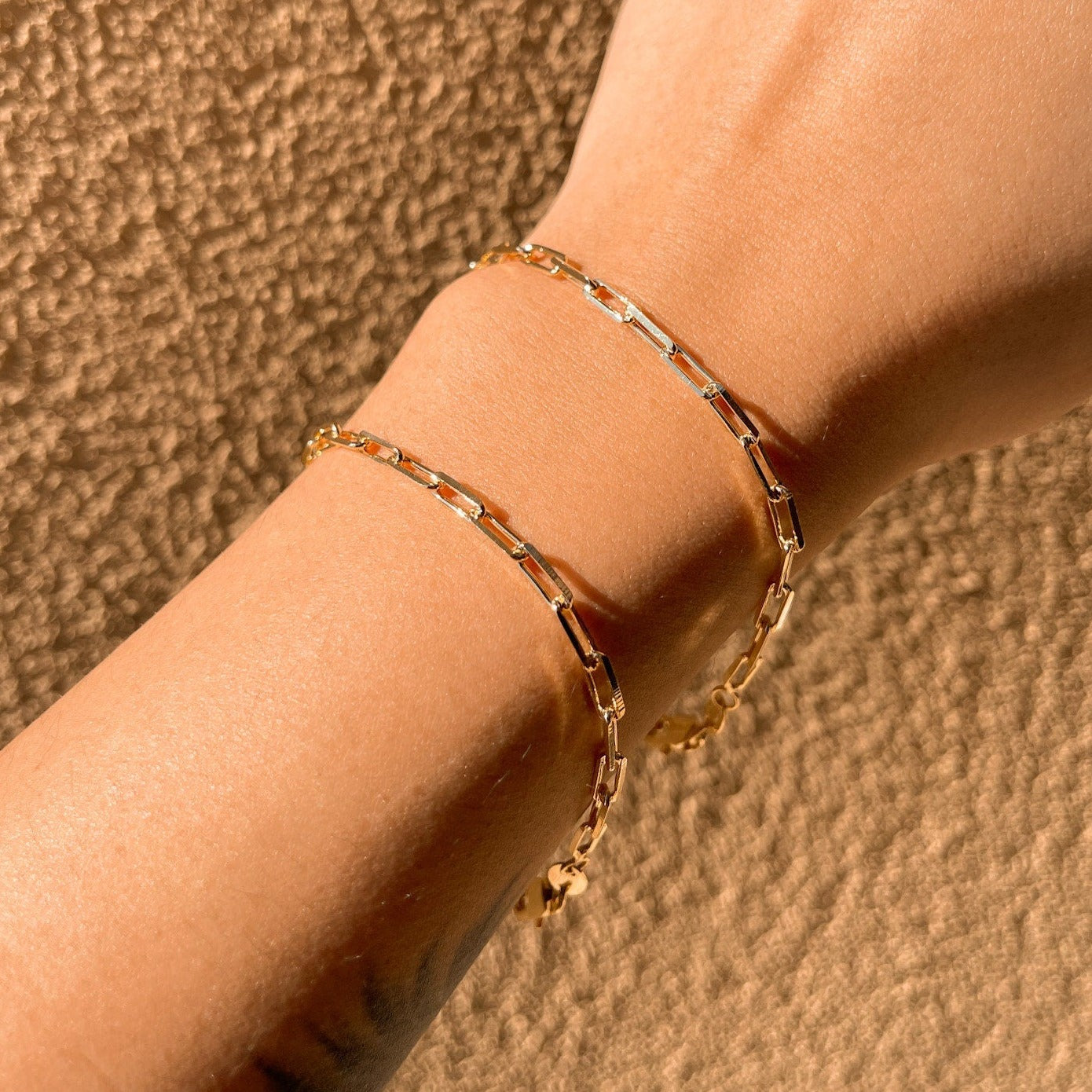 Perfect for stacking with other bracelets or wearing solo, this Gold Filled Reema Paperclip Bracelet effortlessly complements a variety of styles, making it a must-have staple for any jewelry lover.