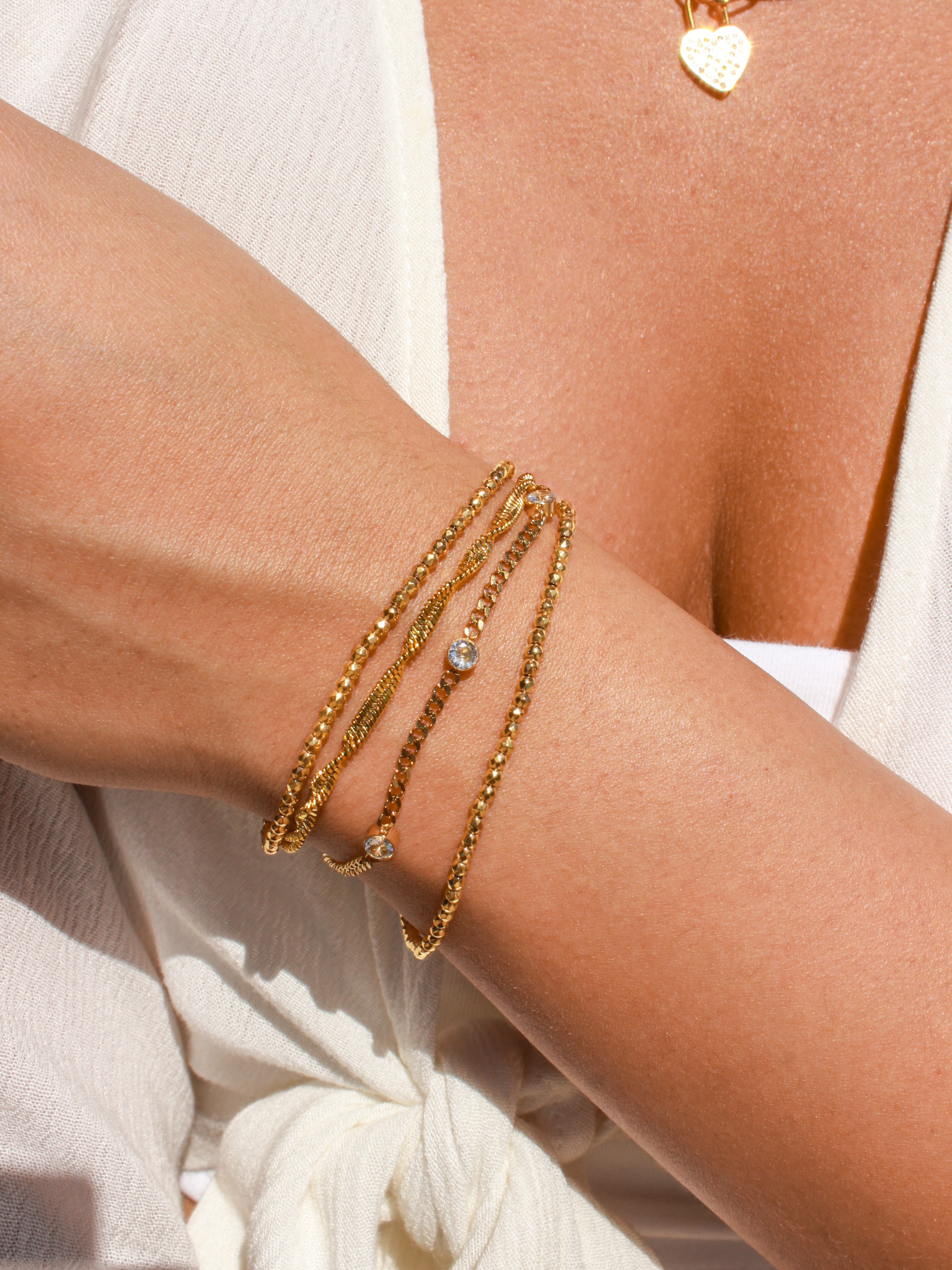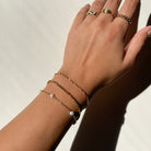 Our jewelry is made with a high-quality stainless steel base and finished with a special PVD coating process—giving each piece a thicker, more durable plating that’s water-safe and long-lasting.