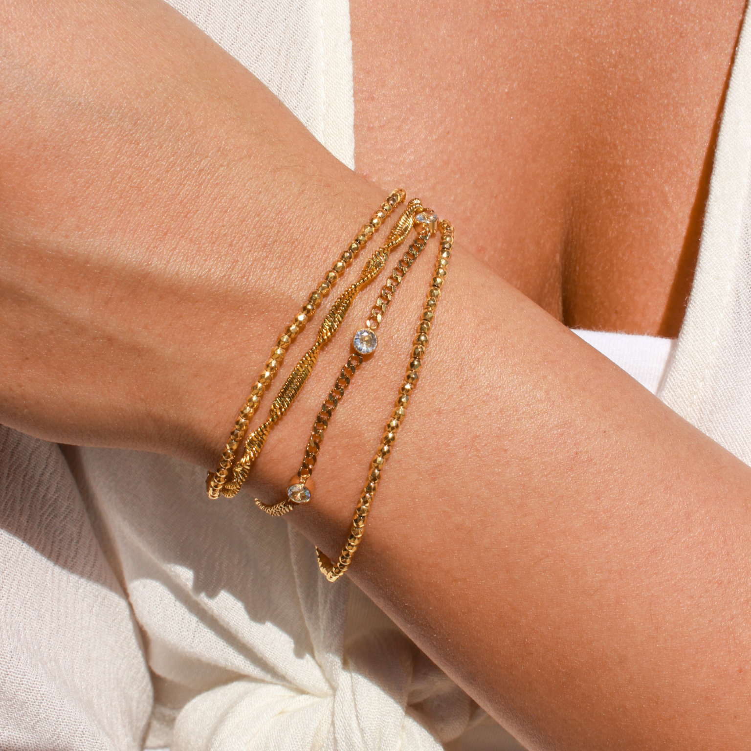 Note: For pieces with pearls or gemstones, please remove them before water or sweat exposure to preserve their shine and luster.