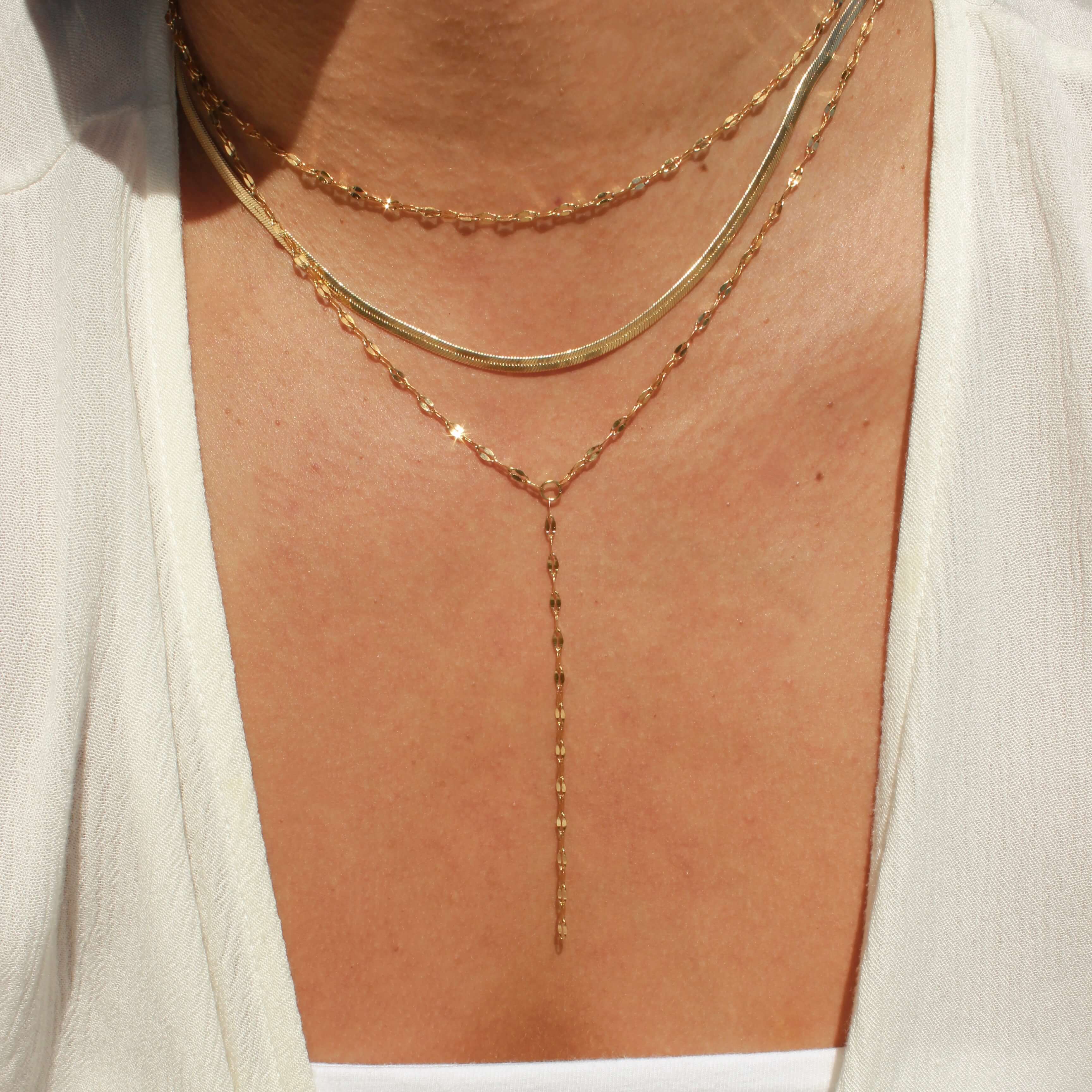 This layered gold necklace is one of those pieces you’ll keep reaching for. The double chain gives that effortless stacked look and the drop chain detail adds just the right touch of something extra. It’s lightweight, super easy to style!