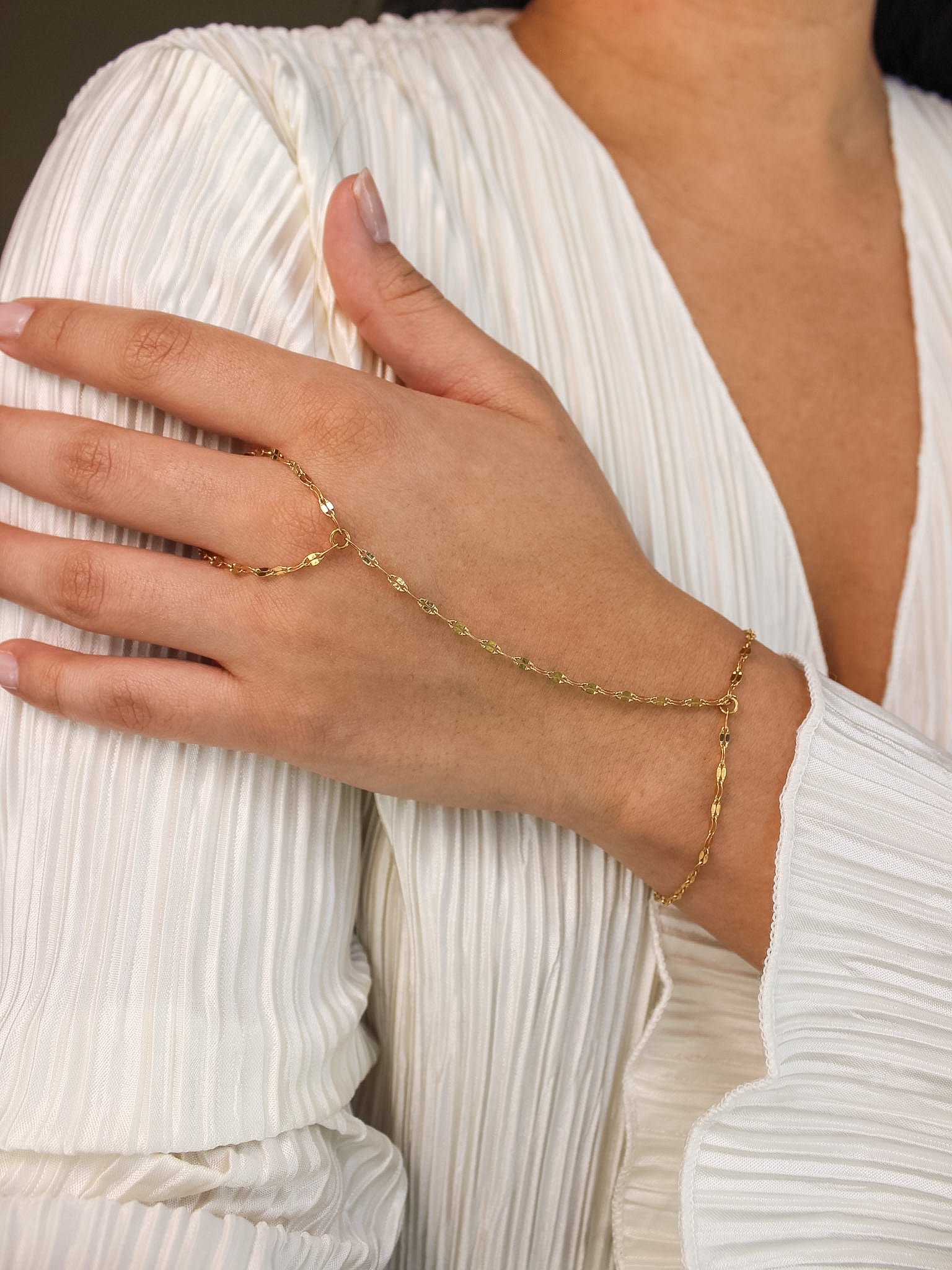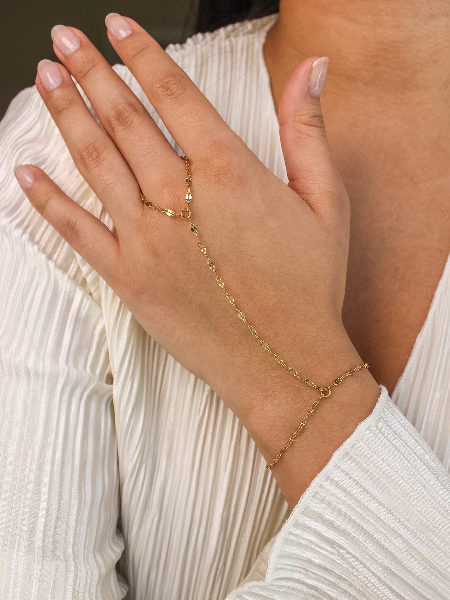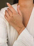 Elevate your everyday style with our Lotus dapped hand chain bracelet. The lightweight design makes it comfortable enough for all-day wear and allows to fit on both your wrist and finger. Its minimal look makes it easy to wear on its own or stacked with your favorite bracelets and rings for a more styled feel.
