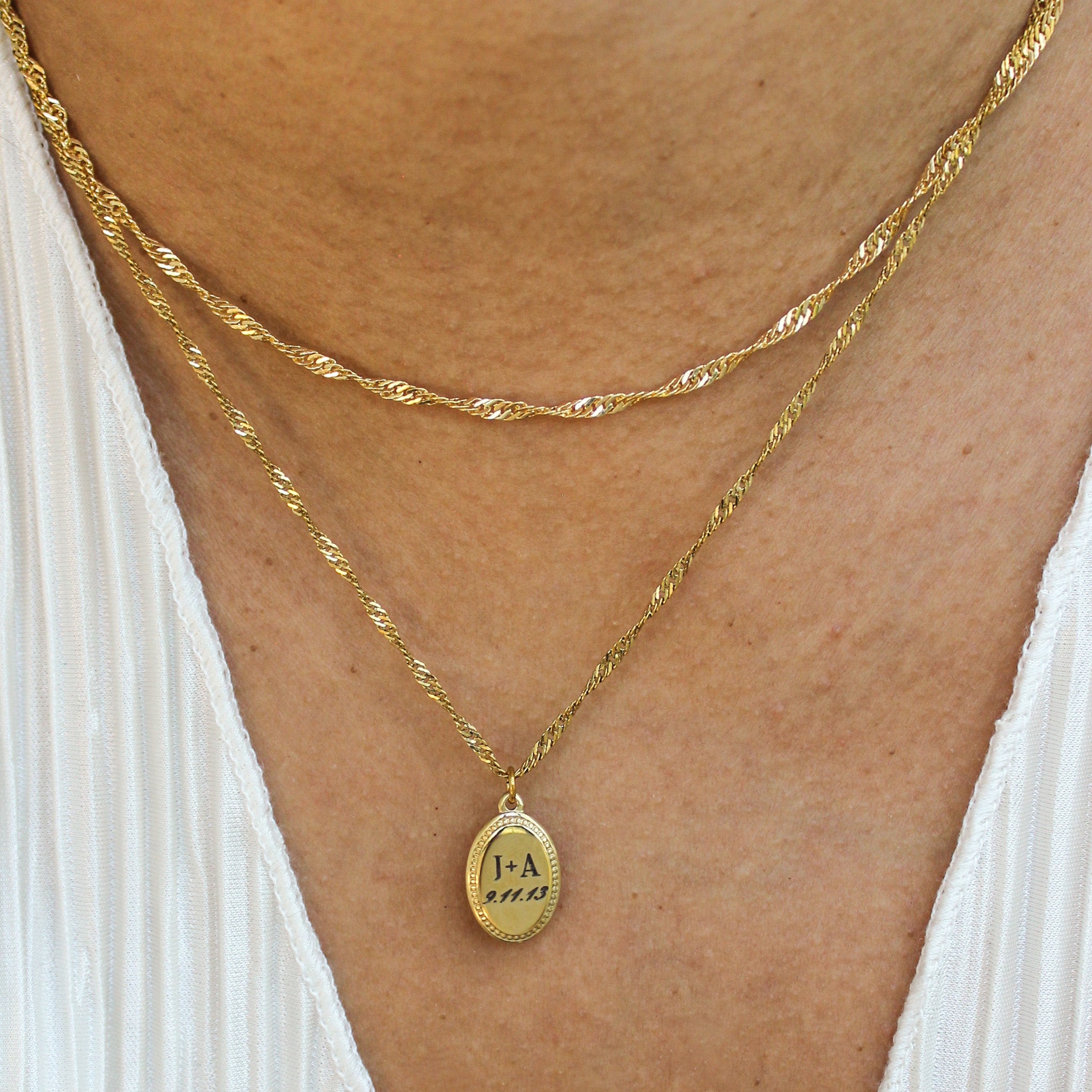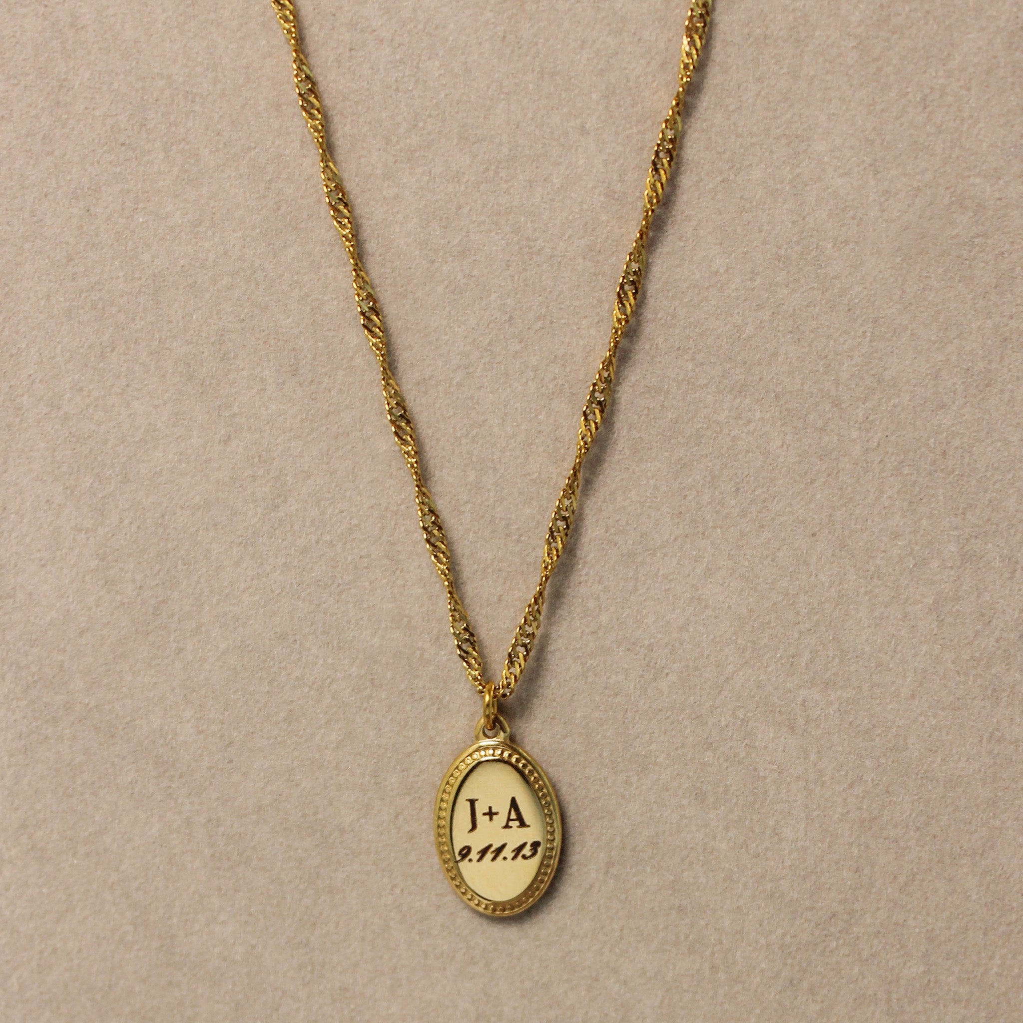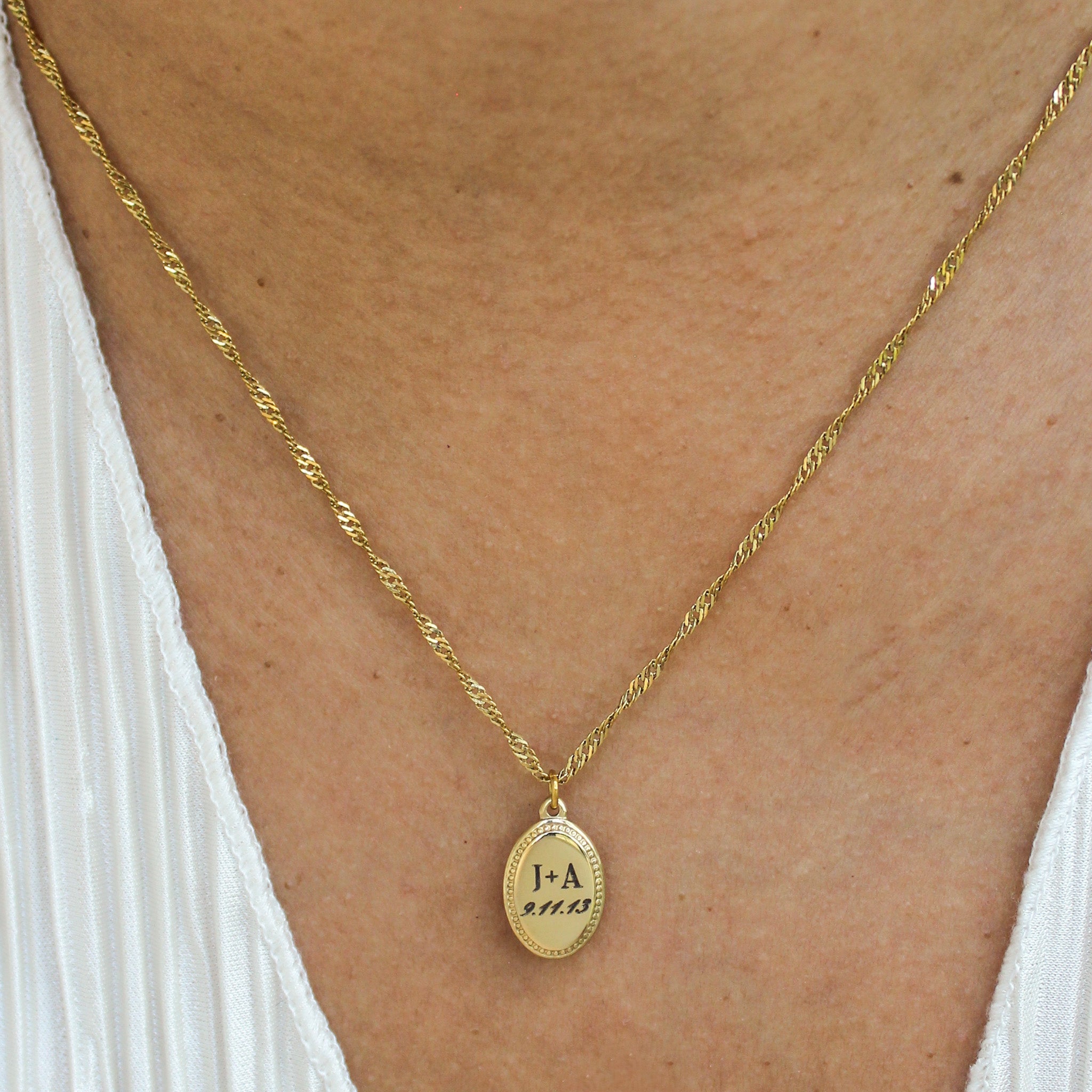 Looking for a truly meaningful piece that feels both vintage and current? Our Engraved Oval Pendant Necklace is the perfect choice! Featuring a delicate frame around a smooth oval, this charm is ready to be personalized with initials, a special date, or a heartfelt message. It hangs beautifully on your choice of any given chain. It's the ideal piece to cherish every day or gift to someone you love this holiday season!