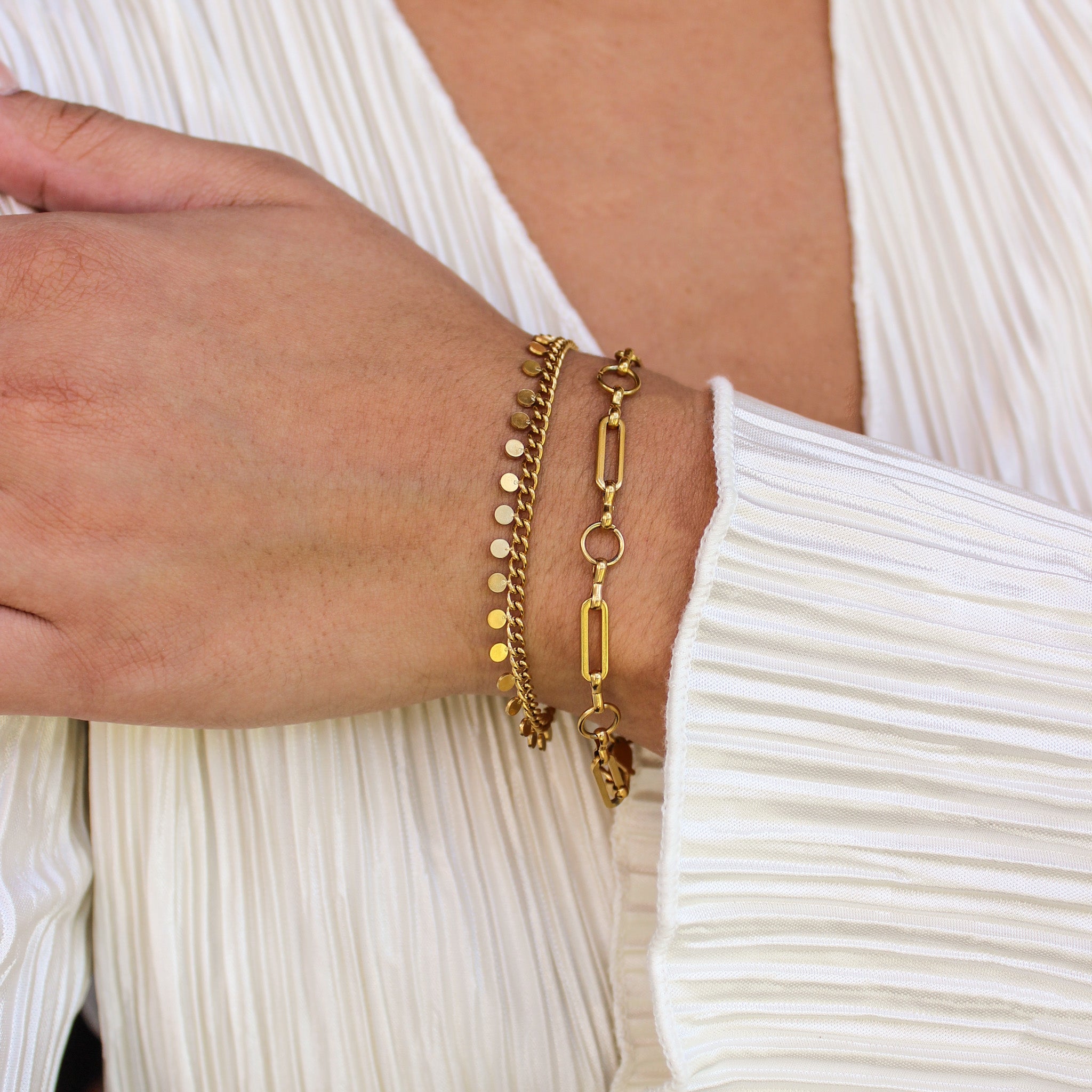 Meet your new favorite fall staple: The Golden Hour Link Chain bracelet! It's got the mix of longer bar links and classic round rings, giving it a mix of dainty and statement look.