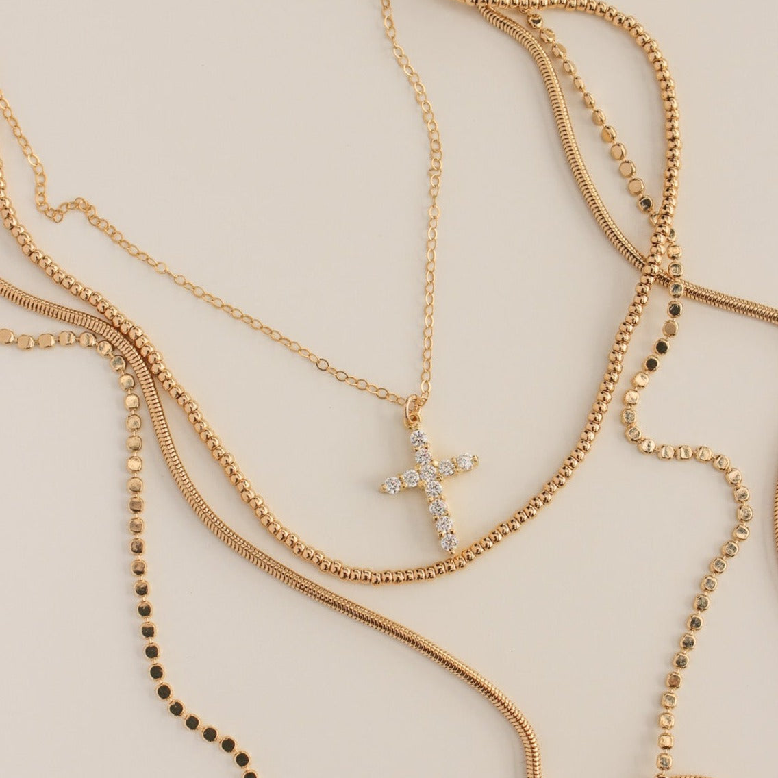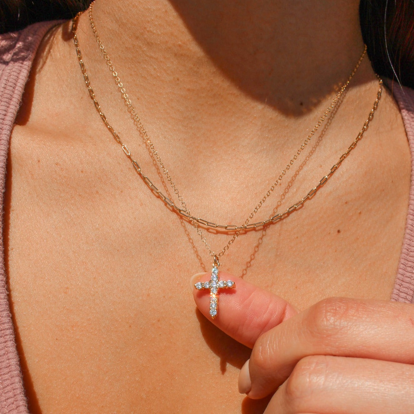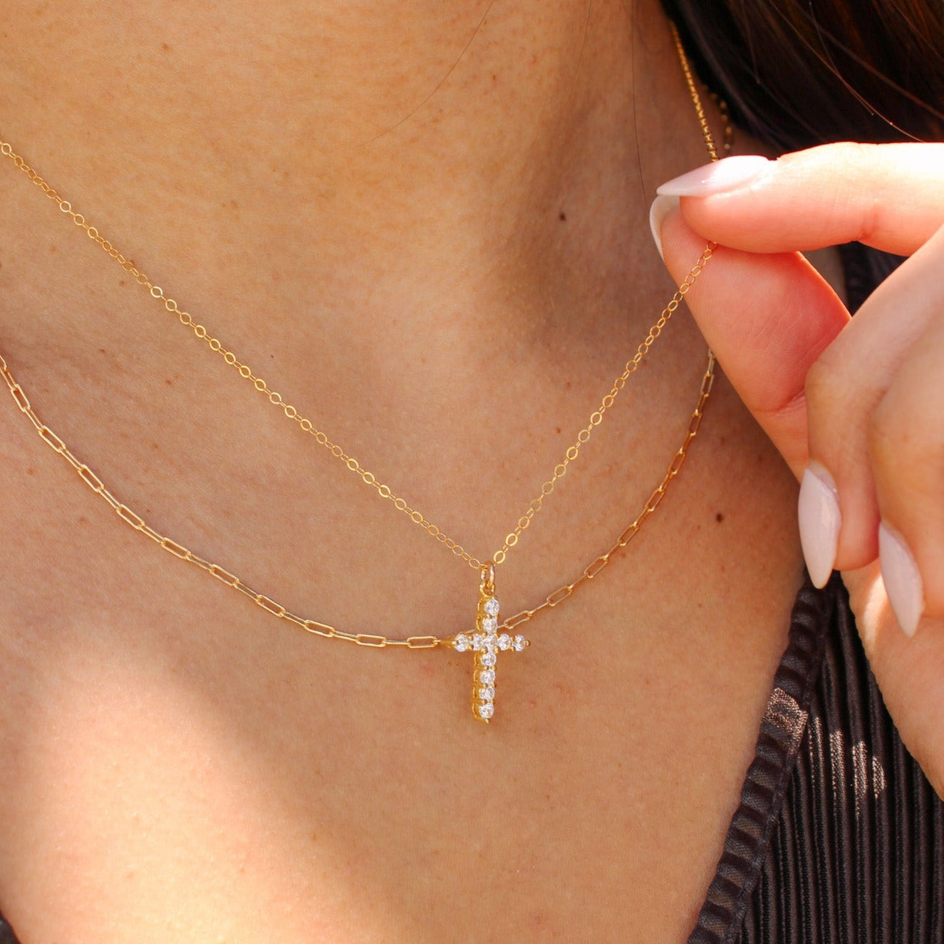 This dainty Maria necklace features a classic gold-filled cable chain with a cz cross pendant. You can wear on it's own or elevate the look layering with other gold chains!