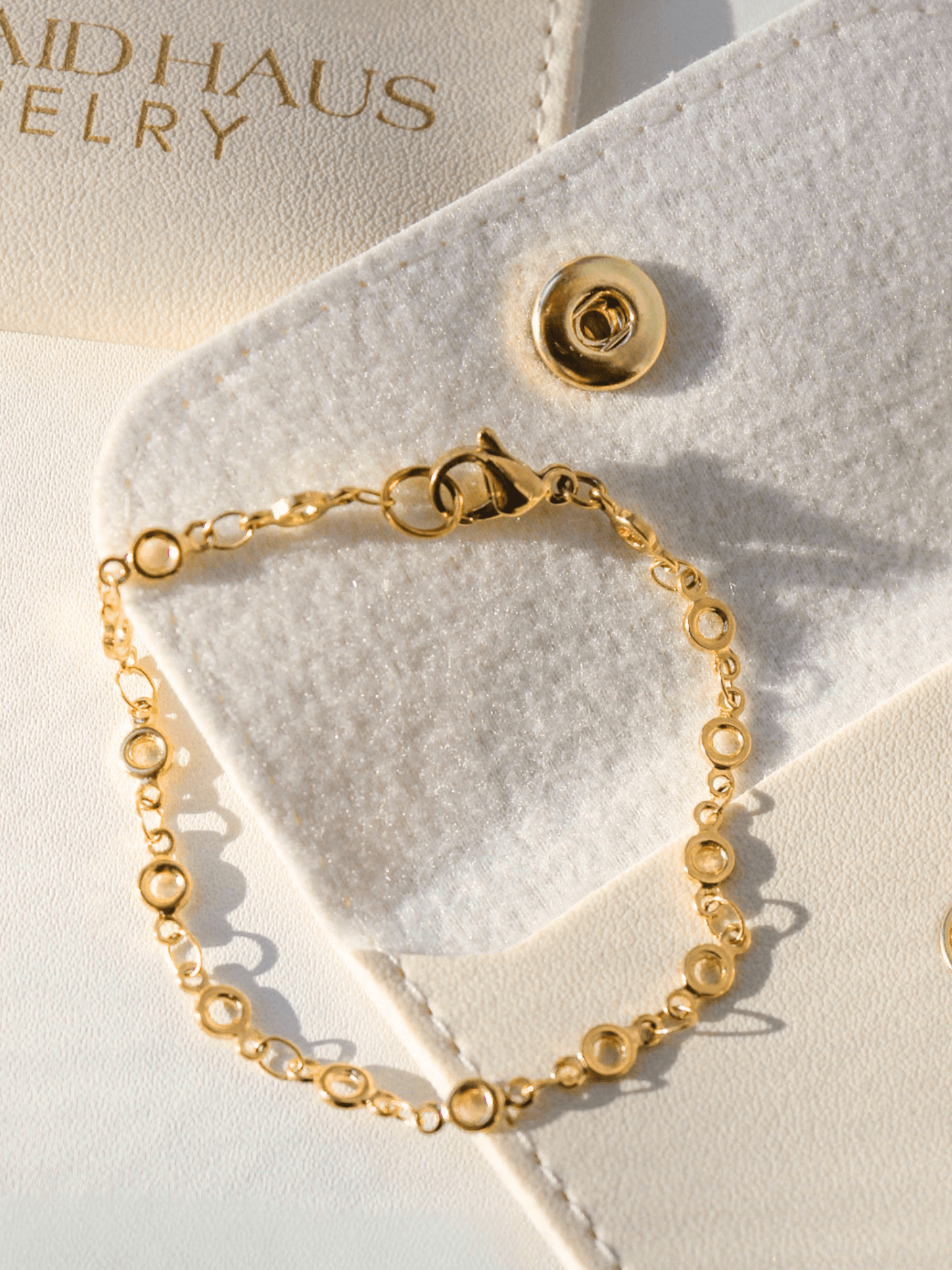 This sparkle cable hand chain is a simple piece with a delicate but sturdy sparkle chain that has a little extra shine. The cable chain design gives it a subtle sparkle that stands out just enough without feeling too much. It’s made from PVD gold plated stainless steel, so it’s durable, water safe, and made for everyday wear and regular use.