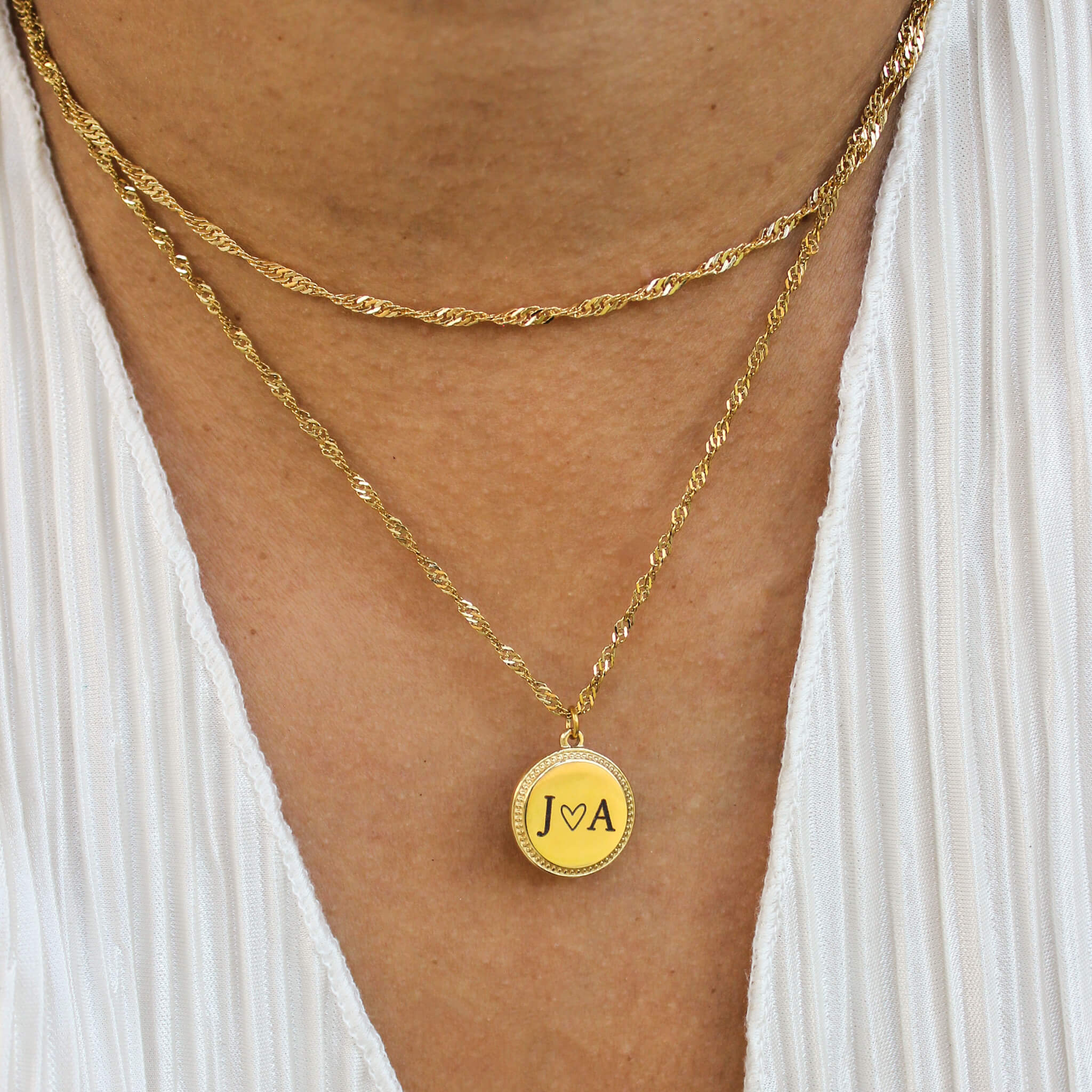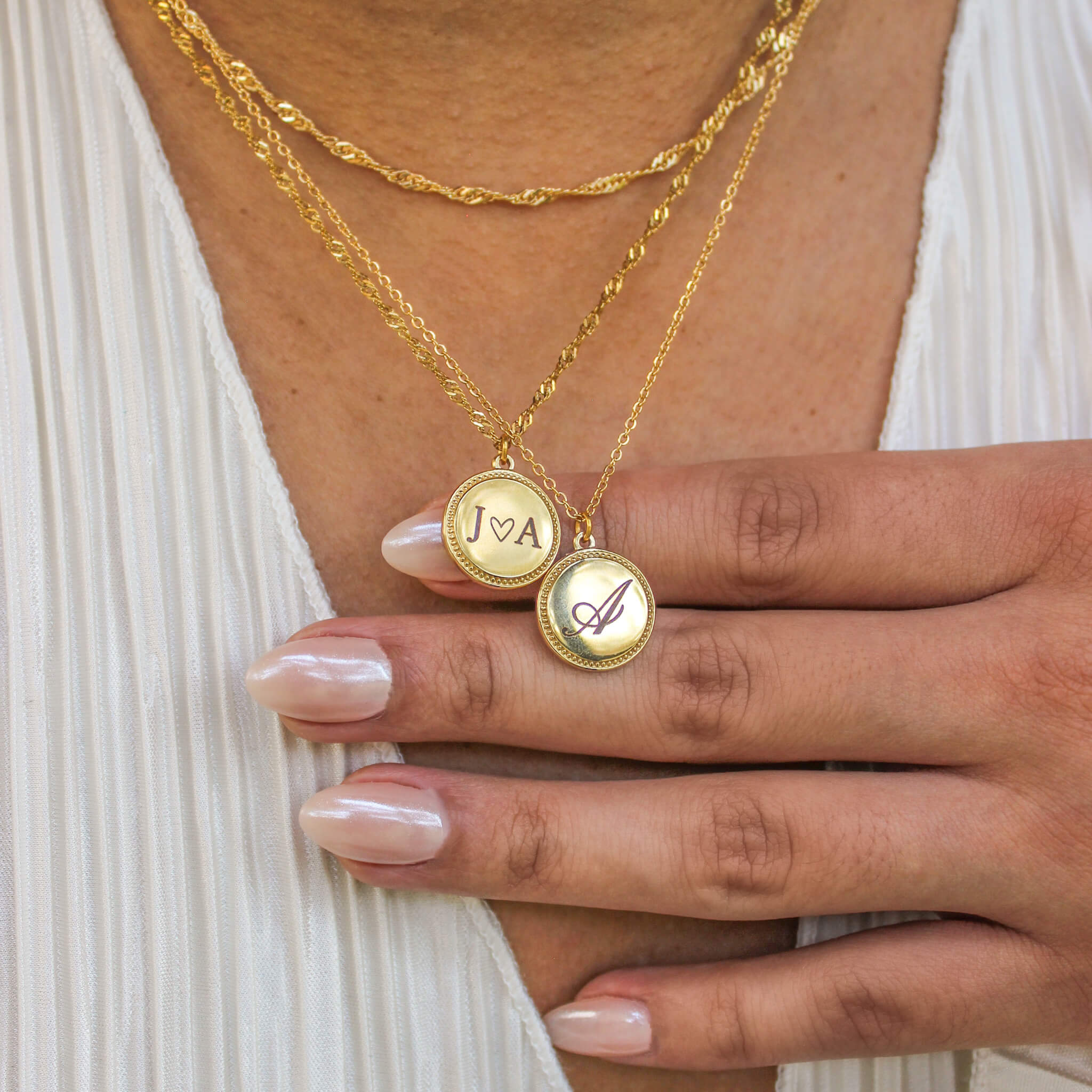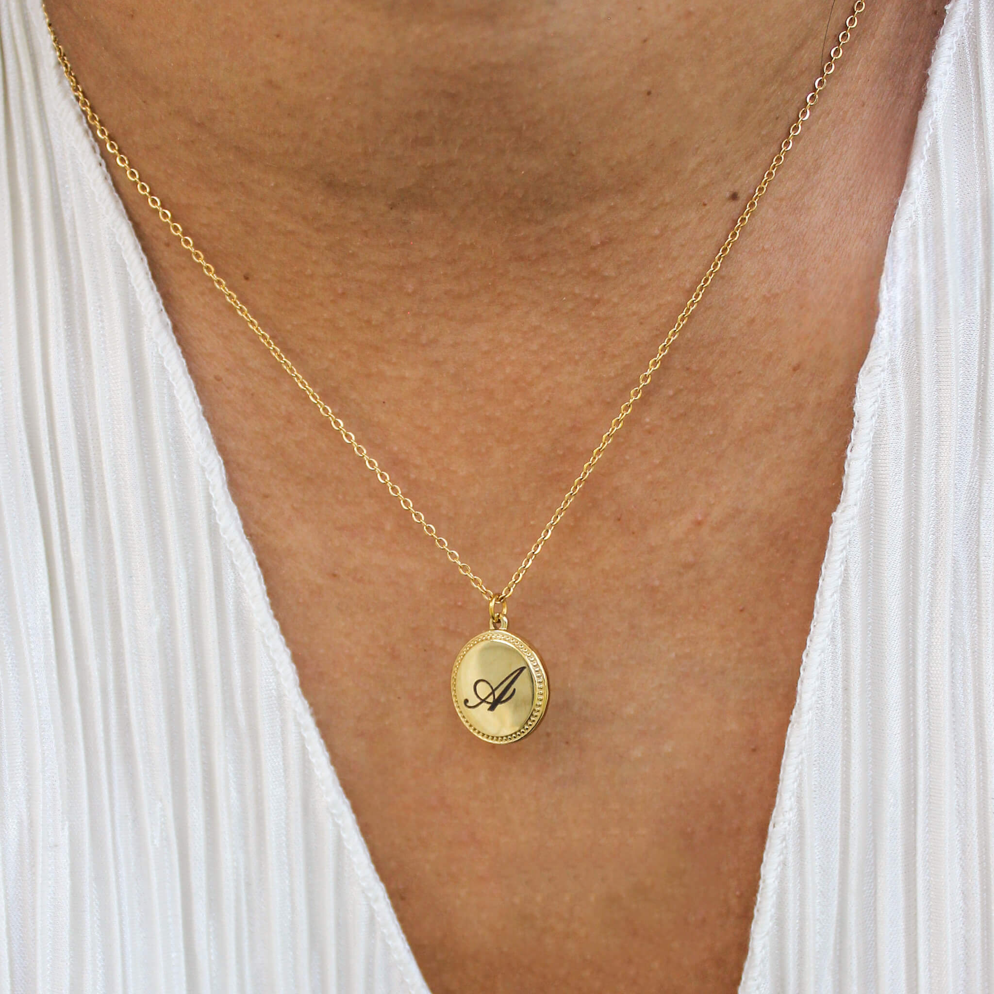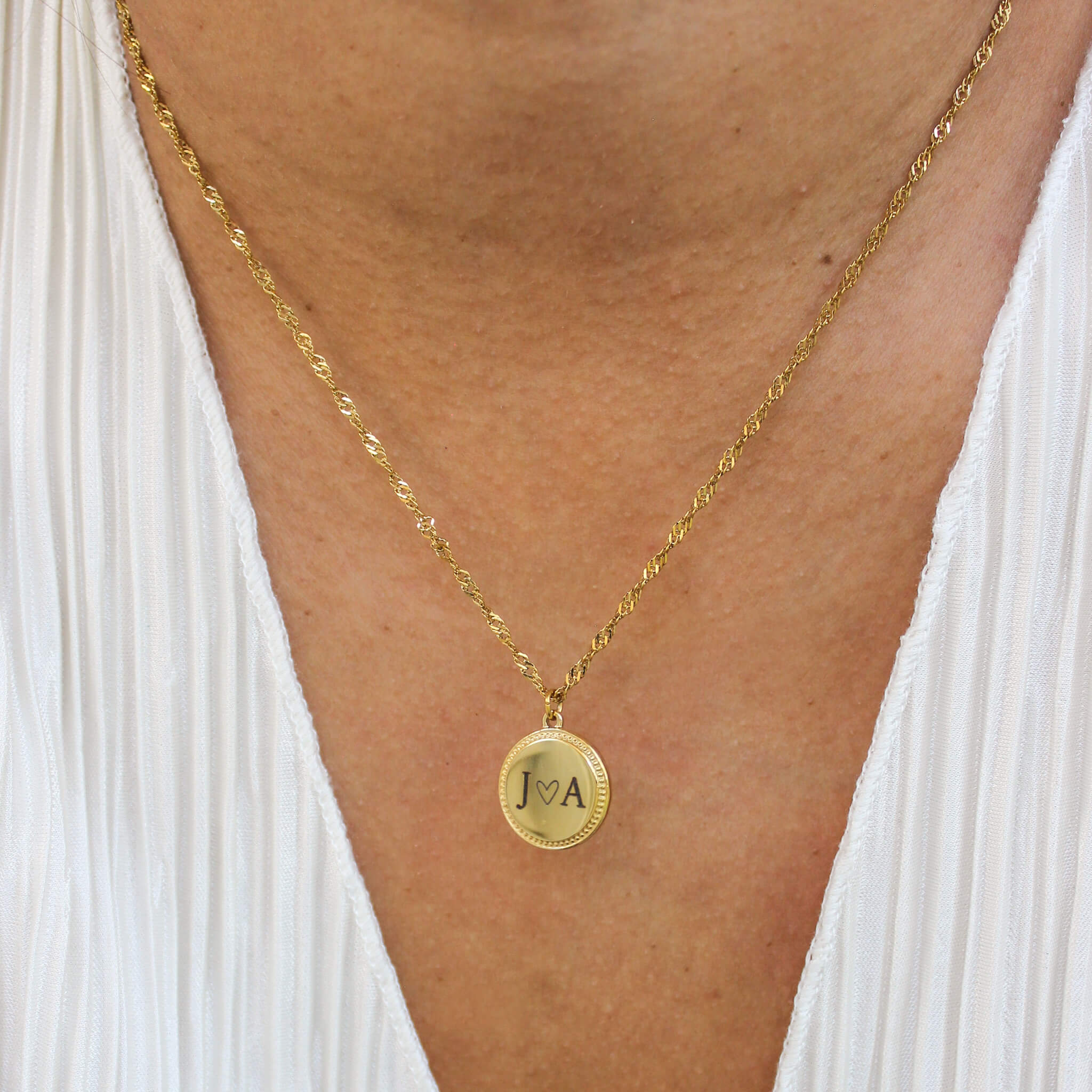 Meet the ultimate sentimental piece, our Gold Engraved Round Pendant Necklace! Customize the medallion with initials, a heart, a favorite script letter, or a special date. It hangs beautifully on a sparkling gold chain of your choice. It’s the ideal personalized necklace that makes a beautiful and thoughtful gift for the holiday season.